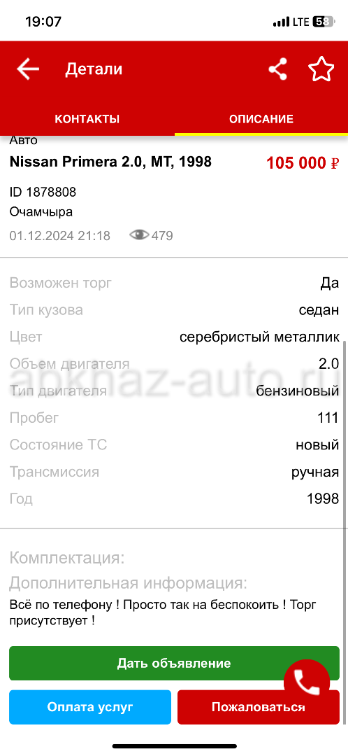 Дата подачи объявления: 04.12.2024 19.09