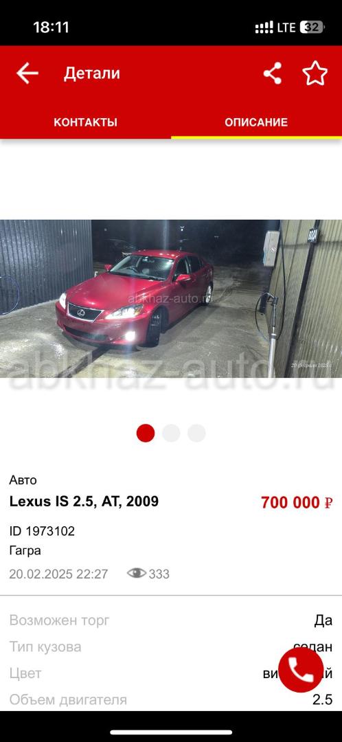 Двигатель: бензиновый, 2.5 л Трансмиссия: автоматическая Кузов: седан Цвет: вишневый Пробег: 123 км Год выпуска: 2009 Регион: Сухум Дополнительная информация: Срочно очень !!! Просто так не звонить ! Машина идеал ! горит срочно !!!!
