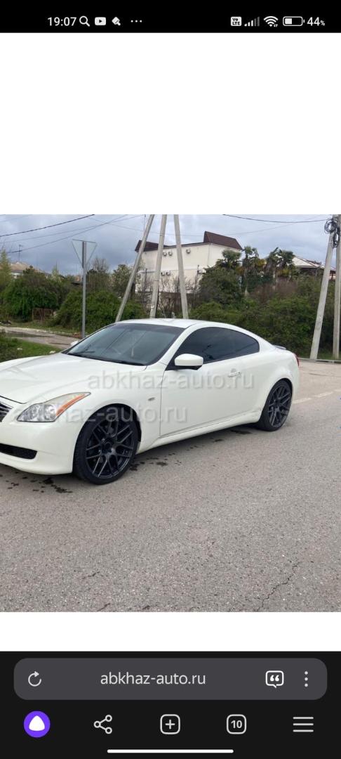 Двигатель: бензиновый, 3.7 л Трансмиссия: автоматическая Кузов: купе Цвет: белый Пробег: 190000 км Год выпуска: 2007 Регион: Вся Абхазия Дополнительная информация: Машина в хорошем состоянии.Делать ничего не надо,есть небольшие недочеты по кузову,маленькие царапины.Кожаный салон в отличном состоянии без потертостей.Красивый хороший выхлоп,стоит попкорн.Продается на чёрных 20х дисках. Писать и звонить ватсап. Торг!!!!