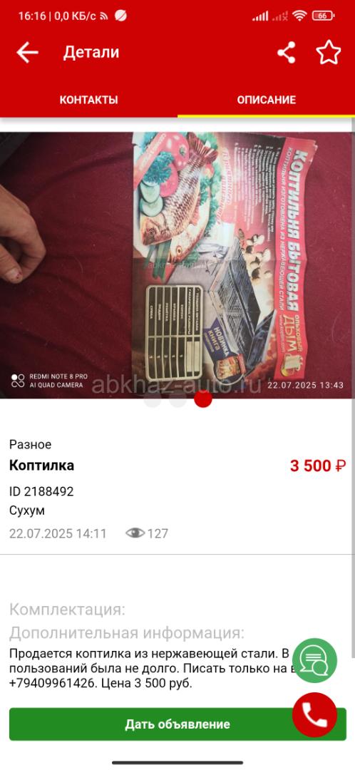 Дополнительная информация: Продаю коптилку. Писать на вотсап +79409961426