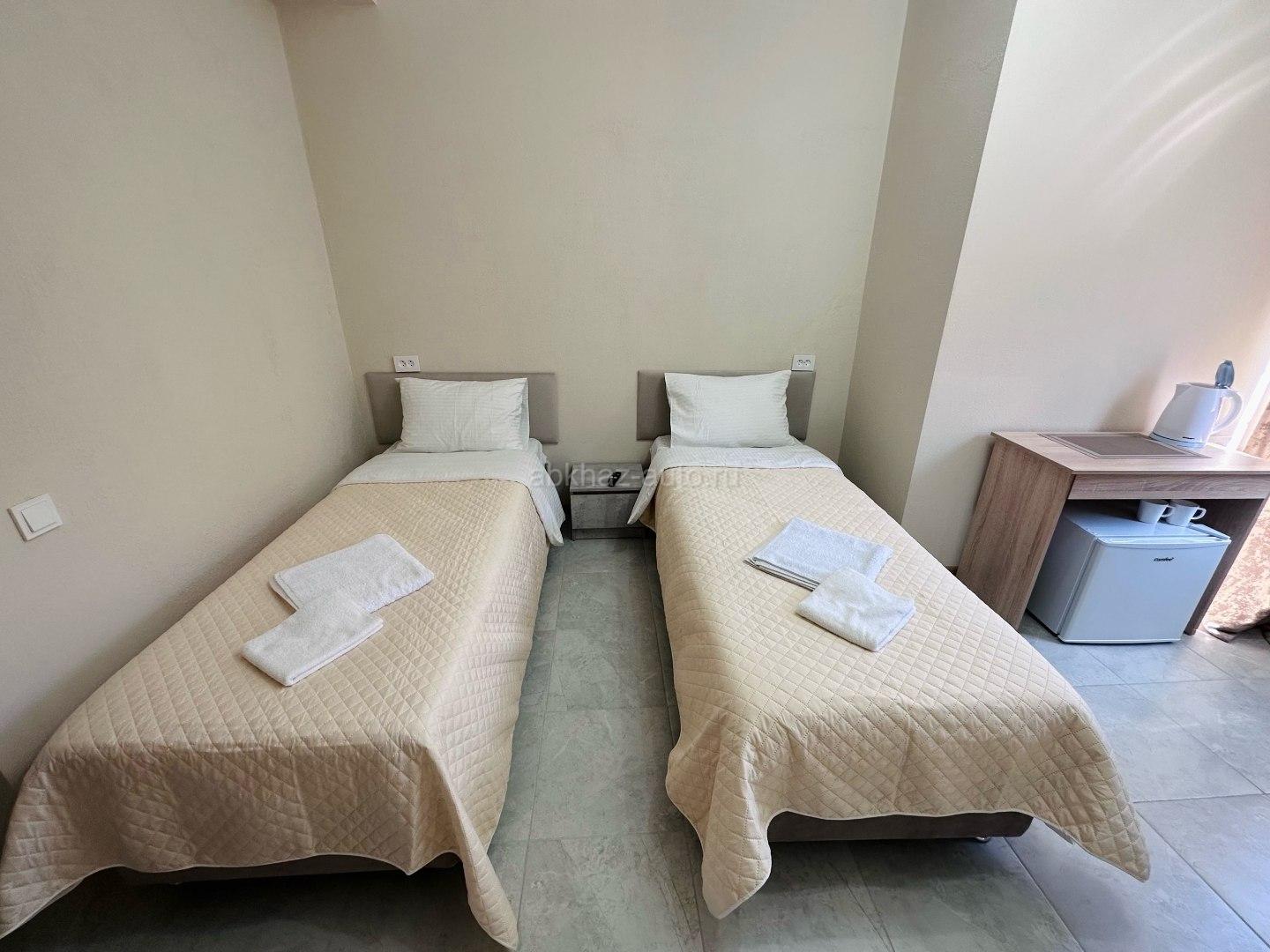 Удобства: Все номера оборудованы: ✅ феном, ✅ мини-холодильником, ✅ электрическим чайником, ✅ банными принадлежностями (зубная паста, щетки, жидкое мыло и шампунь), ✅ тапочками, ✅ набором для чаепития, бокалами, ✅ сплит-системой, ✅ душем и туалетом, ✅ установлены москитные сетки на окнах.