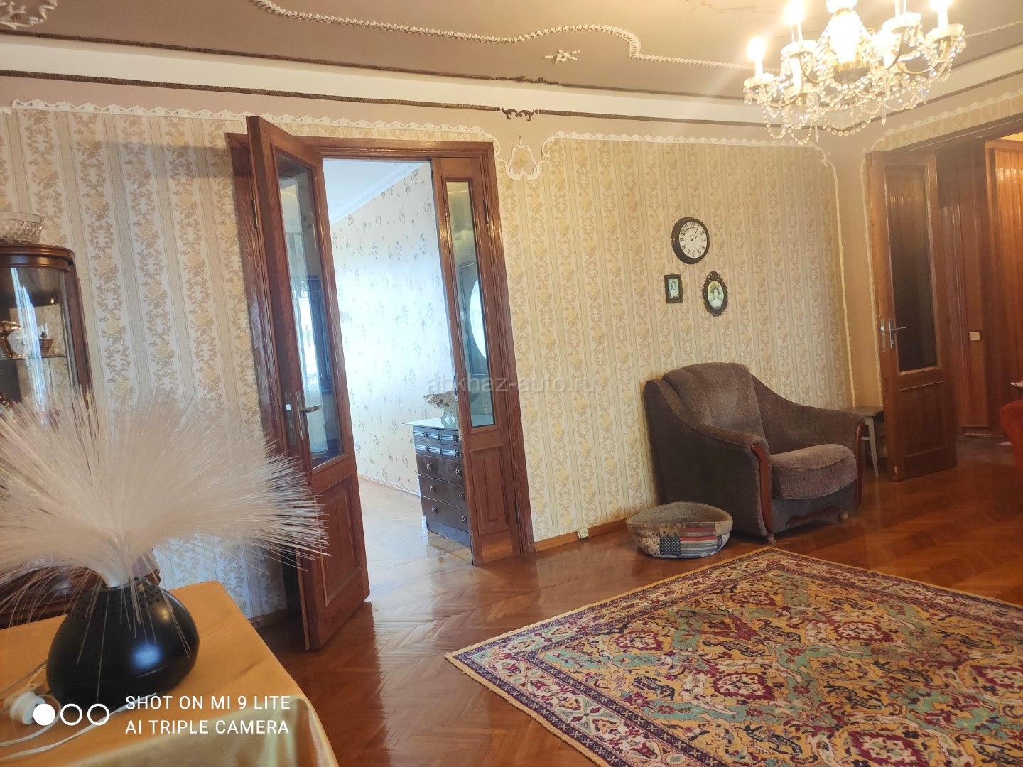 Дополнительная информация: Продажа большой квартиры в новой Гагре, рядом с набережной и морем, в центре развитой инфраструктуры.Панорамный вид на море, горы. квартира в классическом стиле: настоящий камин, большая гостиная, объединенная с лоджией, 3 спальни, детская комната ( переделана из кухни), два санузла, душевая, изолированная кухня-столовая ( обустроенное помещение из открытого балкона-сушилки), холл ( закрытая и отремонтированная часть подъезда). Зеленый двор, чистый подъезд, домофон. Общая площадь: 105,45 м2 Дополнительно кухня-столовая-14м2 Установлены кондиционеры (3 ед.) в гостиной, столовой, спальне (прошли техосмотр и очистку), стиральная машина, холодильники, электро-плита, газовая плита, микроволновая печь, телевизор, спутниковое телевидение «три колор», бойлер для нагрева воды. Коммуникации: электропроводка в хорошем состоянии, автоматы и счетчик, в ванной меняли трубы для подачи воды, дополнительно установлены два накопительных бака ( на чердаке и в гараже) и мотор для подачи воды в квартиру.