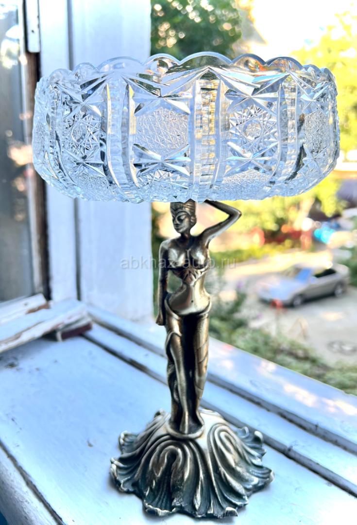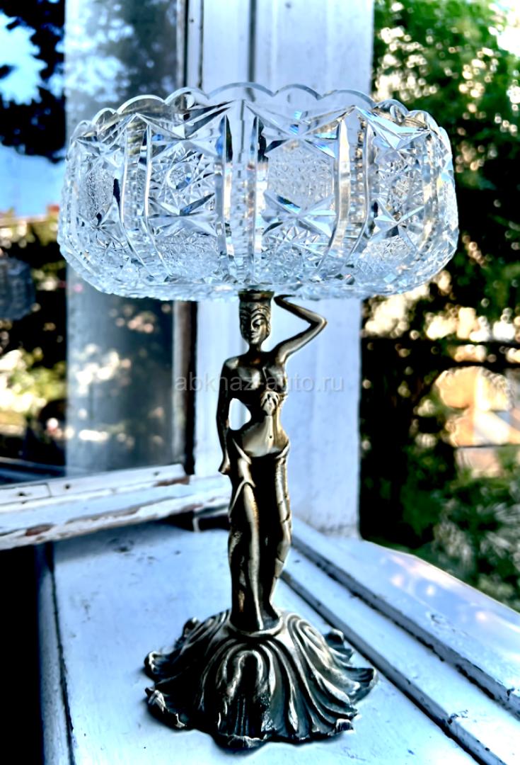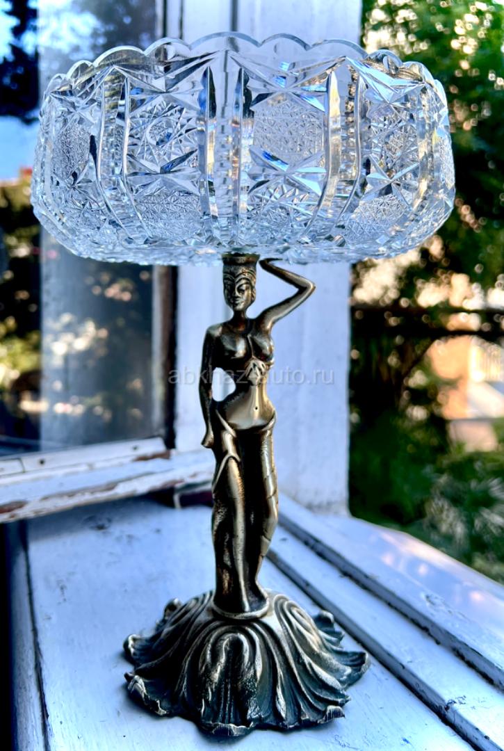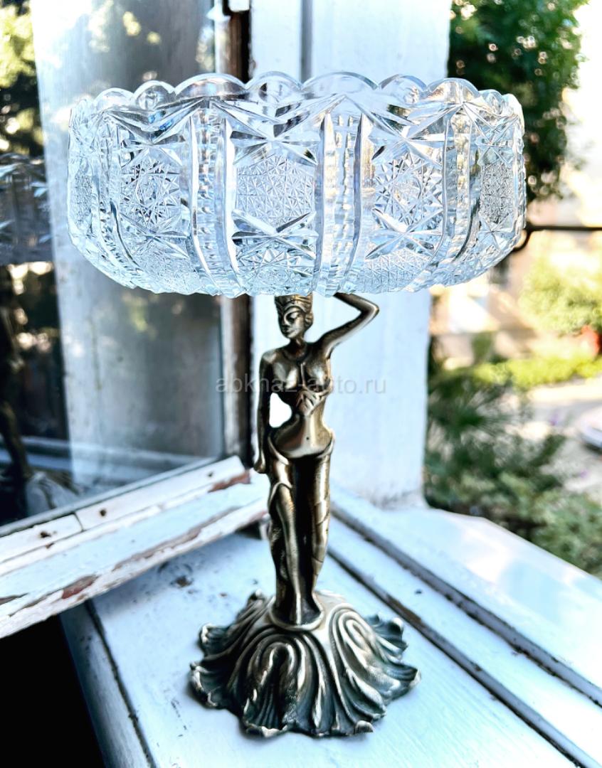 Антикварная хрустальная ваза на бронзовой подставке