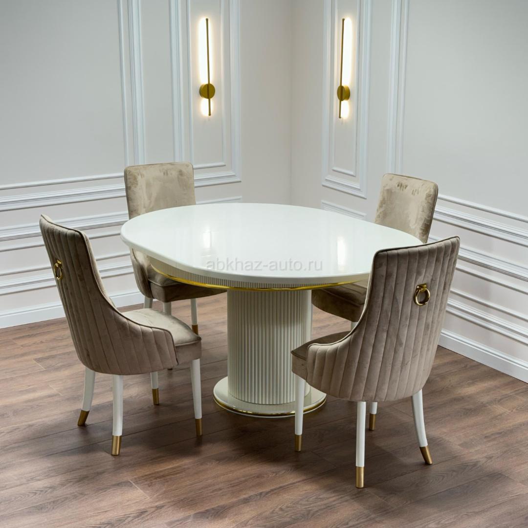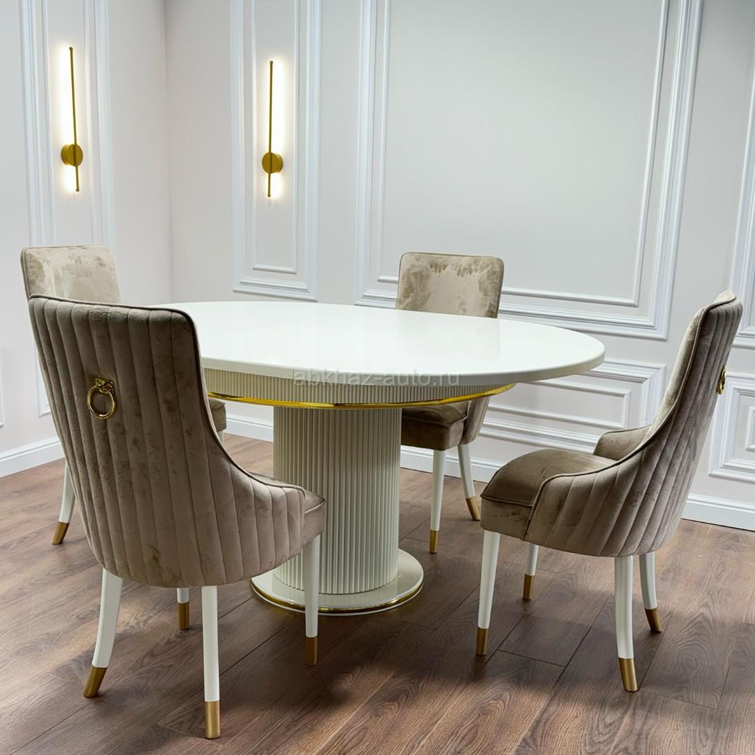 Дополнительная информация: Стол «Азалия» Размеры: 120/160 Цена:29.000₽ ————— Стулья « Грация » Цена: 6.500₽ Доставка по селу бесплатная...