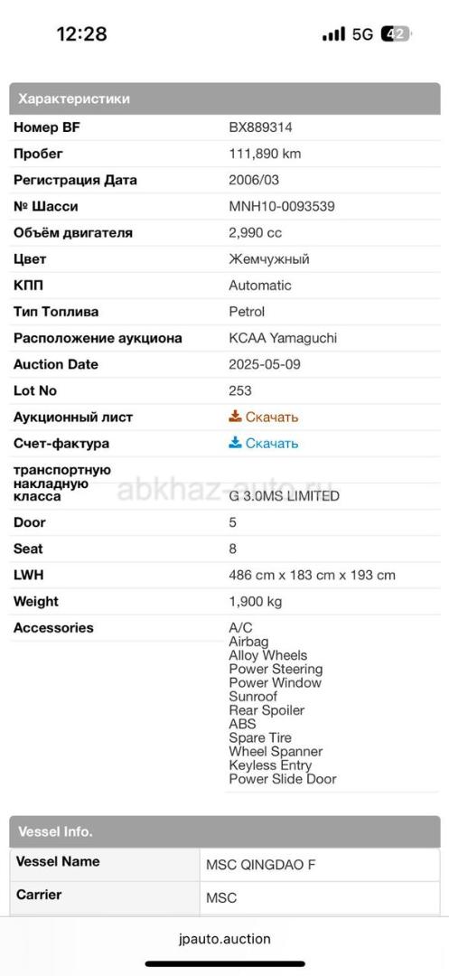 Двигатель: бензиновый, 3.0 л Трансмиссия: автоматическая Кузов: минивэн Цвет: белый Пробег: 111 км Год выпуска: 2006 Регион: Сухум Цена: 700 000 руб.