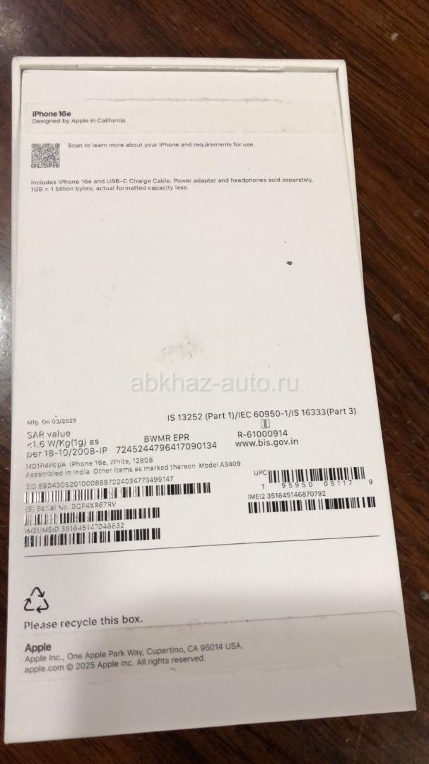 Дополнительная информация: Продаю телефон IPhone 16e 128gb. Белый. Телефон новый не активированный. Покупал сегодня 03.10. Писать на WhatsApp