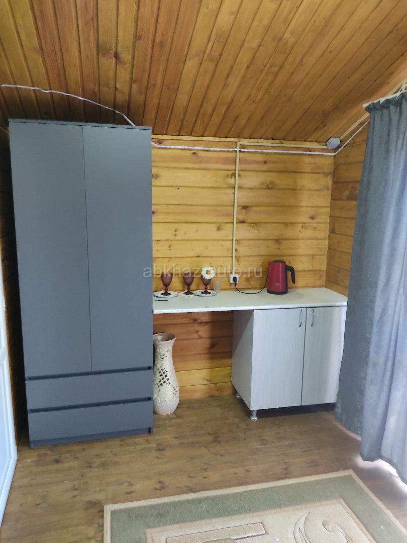Дополнительная информация: Сдается ЭКО котедж утеплённый. Для зимнего проживания. Размером как однокомнатная квартира. Только ещё есть и двор. Частный сектор , находится за Сухумским пивзаводом. Отдельный участок свой личный вход. Большой двор мангальная зона есть . Кухня столовая . В домике все необходимое есть. Рассчитан на 2-3 спальных места.