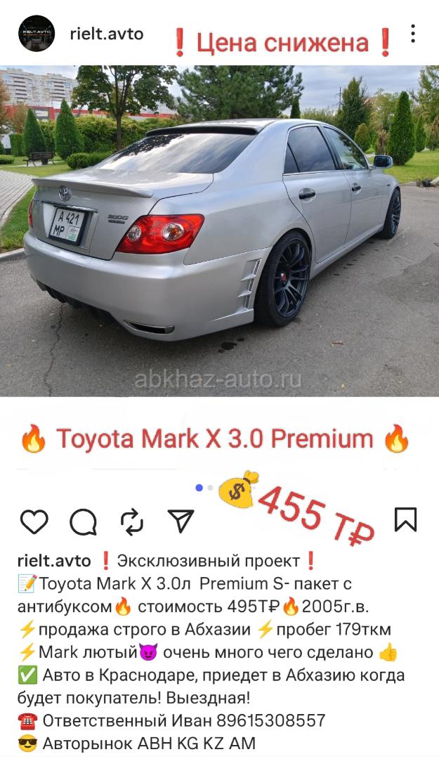 Двигатель: бензиновый, 3.0 л Трансмиссия: автоматическая Кузов: седан Цвет: серебристый металлик Пробег: 178 км Год выпуска: 2005 Регион: Вся Абхазия Дополнительная информация: Двигатель в идеале, чистейший выхлоп. Панель целая в идеале! Авто в Краснодаре, привезу когда будет покупатель. Выездная Подвеска вся в идеале сайлентблоки все новые,стоят кайловеры регулируются по высоте Спереди стоят 4 х поршневые суппорта диски Циммерман перварированые , задние тормоза увеличенные вентилируемые диски текстар. Машина загирленена крылья перед зад багажник двери. Хорошая музыка, усилитель колонки JBL, голова алпайн вместо штатной. Выхлоп переварен задние банки борла с Инфинити , установлены пламегасители установлены резонаторы гельм-гольца для поглощения резонанса. 500 км назад сделал то, масло только BARDAHL 5w30 от замены до замены не расходует в любом стиле езды. Без ключевой доступ.