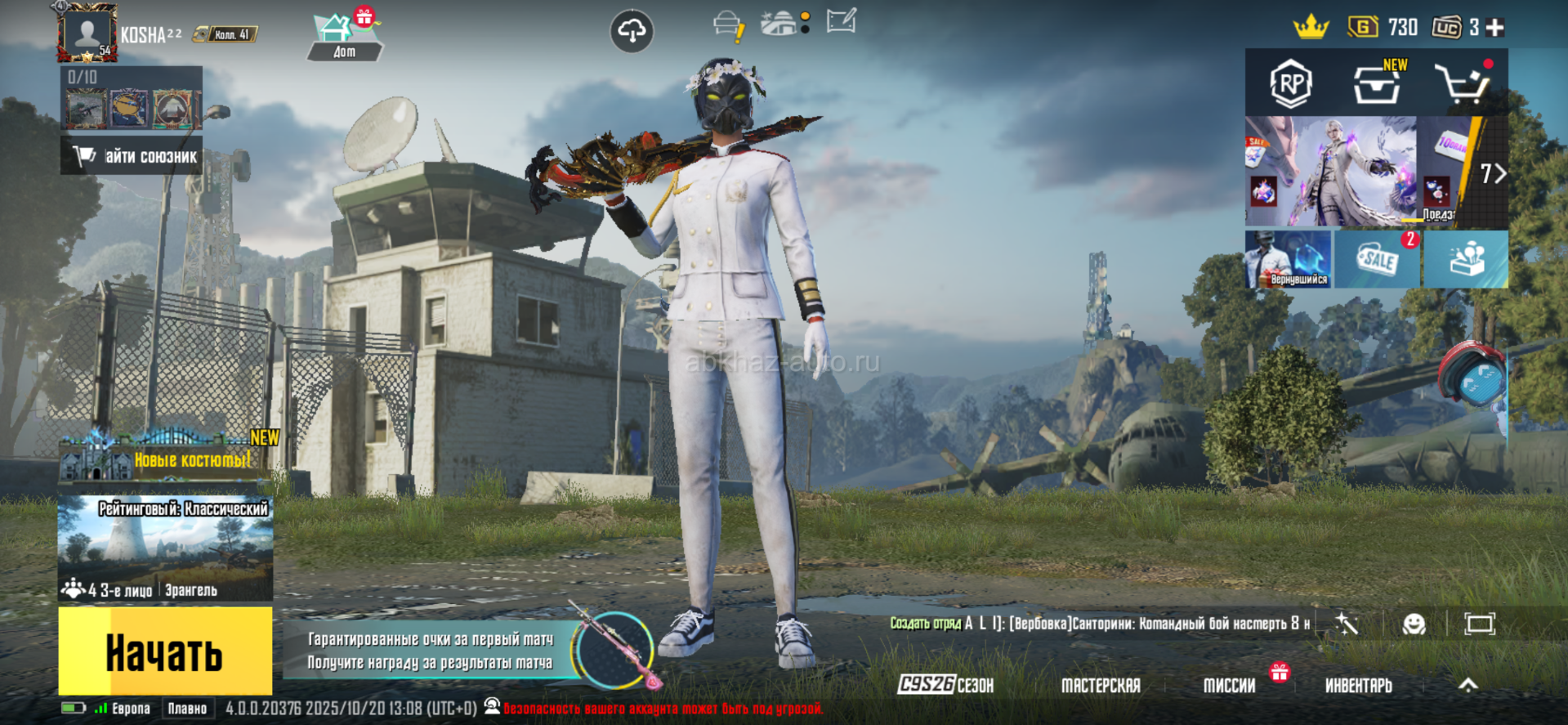 Дополнительная информация: Продаю аккаунт все привязки все мое личное (перепривяжем)на аккаунте авм 4 уровня мка 14 -4 уровня скар 4 уровня сайга 3 уровень помпа 3 уровень юмп юбилей фулл х костюм 2 уровень шлем мифический рюкзак мифический фул сеты ананас капитан есть бригадка Писать в тг @BENIYAar