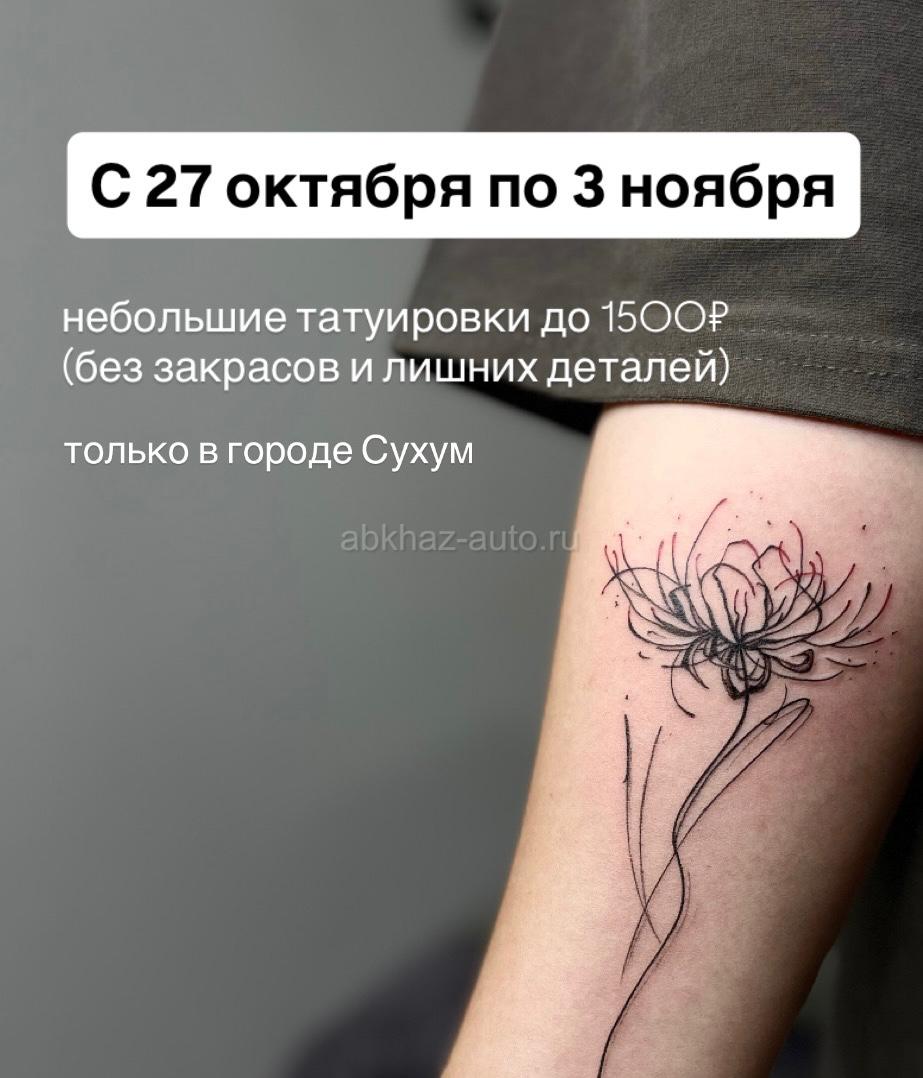 Дополнительная информация: С 27 октября по 3 ноября есть уникальная возможность сделать: Небольшую тату до 1500₽ вместо 3000₽ (Рисунок,надпись,минимализм) Пирсинг ушей(любой одиночный) за 1000₽ вместо 2000₽ Перманентный макияж бровей за 2000₽ вместо 4000₽ Мастер с опытом около 4х лет,медицинское и художественное образование Стоимость снижена в связи с переездом Всю информацию о проколах и тату можно посмотреть в инстаграм helllloow_ Работаю только одноразовыми и стерильными расходными материалами Пирсинг выполняю иглой,перманентный макияж только на естественных пигментах Принимаю в городе Сухум по улице Акиртава +79409993239 писать в вотсап