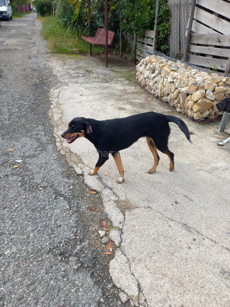 Помесь добермана, год, девочка, стерильная ищет семью.