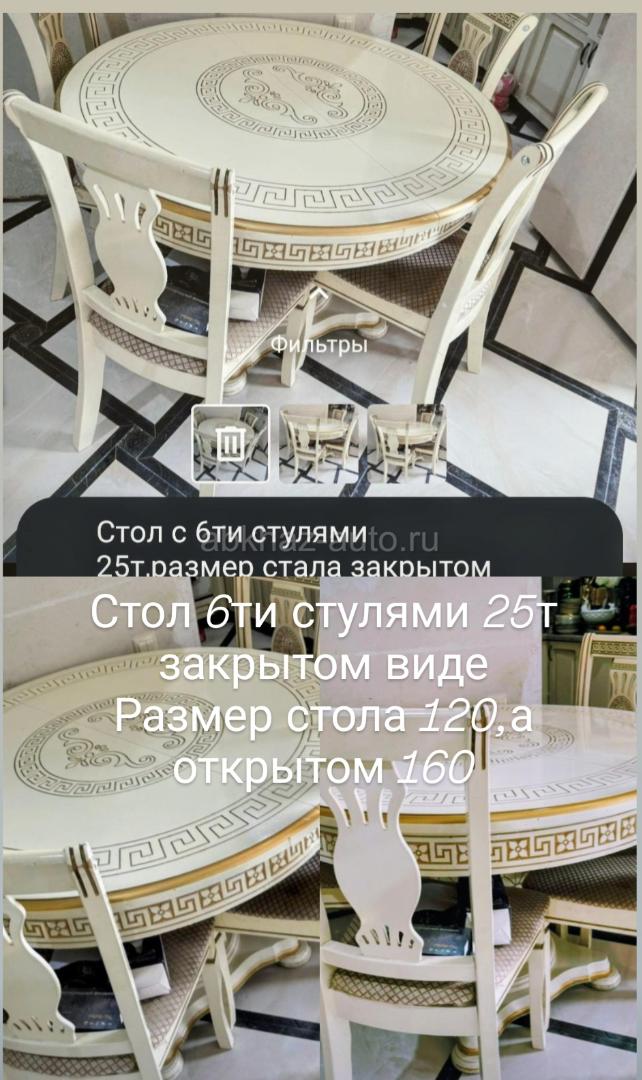 Дополнительная информация: Стол 6ти стулями очень хорошем состоянии ,размер стола 120см,а открытом виде 160см