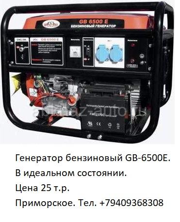 Дополнительная информация: Генератор бензиновый GB-6500E. В идеальном состоянии. Цена 25 т.р. Приморское. Тел. +79409368308