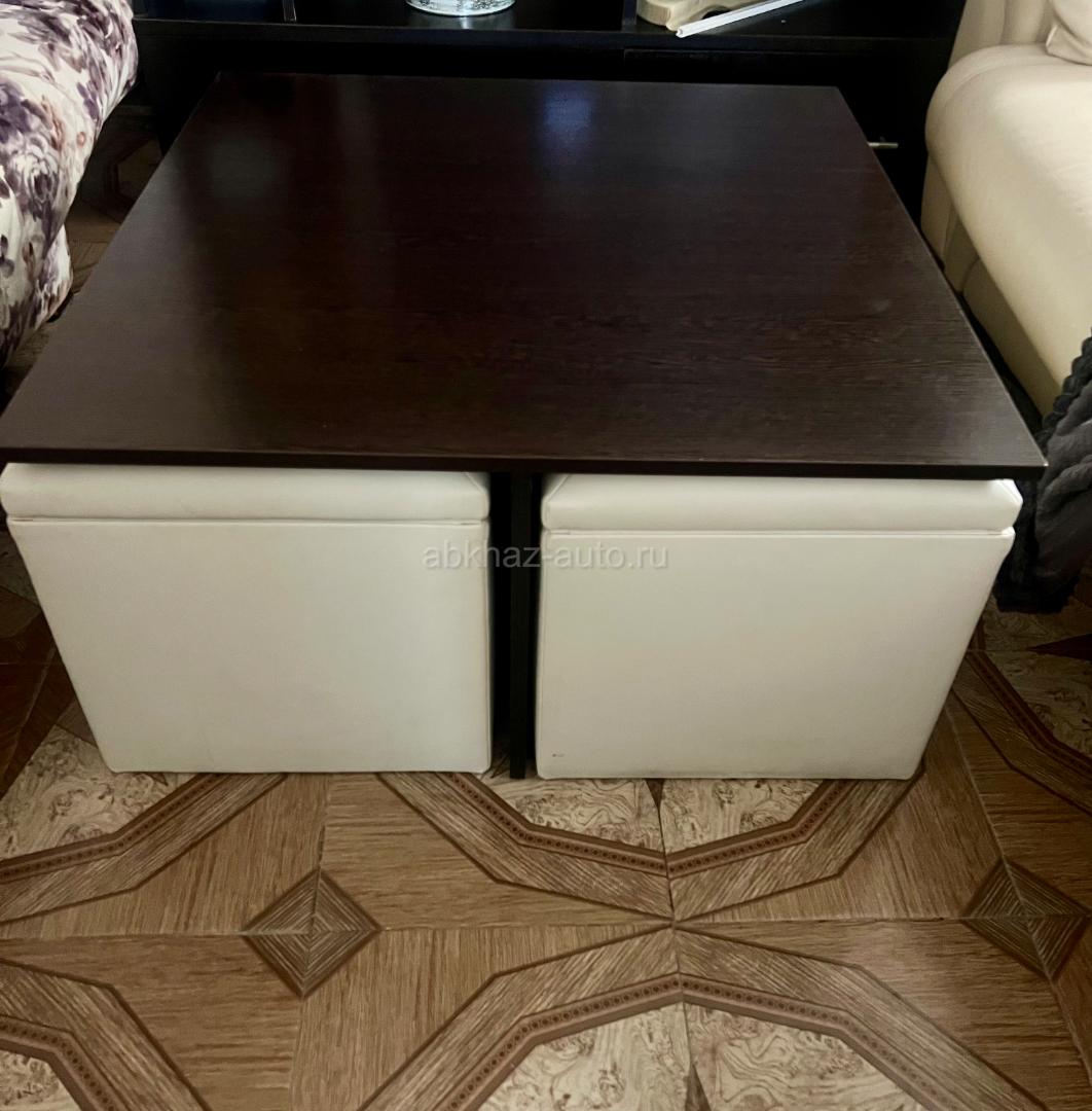 Дополнительная информация: В отличном состоянии, в каждом пуфе места для хранения. Рр стола 81*81, высота 43 см. Просьба обращаться по вотсап. Возможна доставка