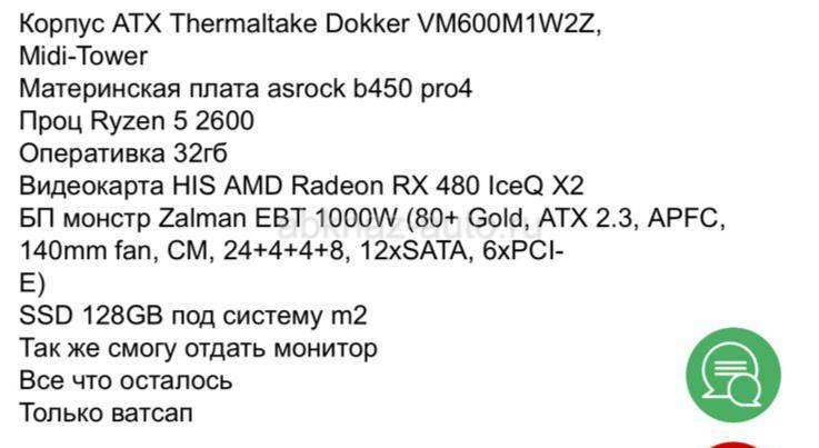Дополнительная информация: В хорошем состоянии, потянет большинство игр в хорошем фпс, есть потенциал для апгрейда, мать и БП позволяет, продажа срочная, нужны деньги, в комплекте вся периферия, монитор, наушники, клава, мышь, одним словом сел поехал, торг, писать на вотсап