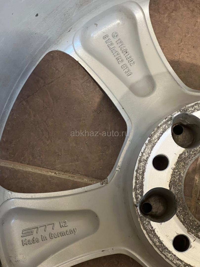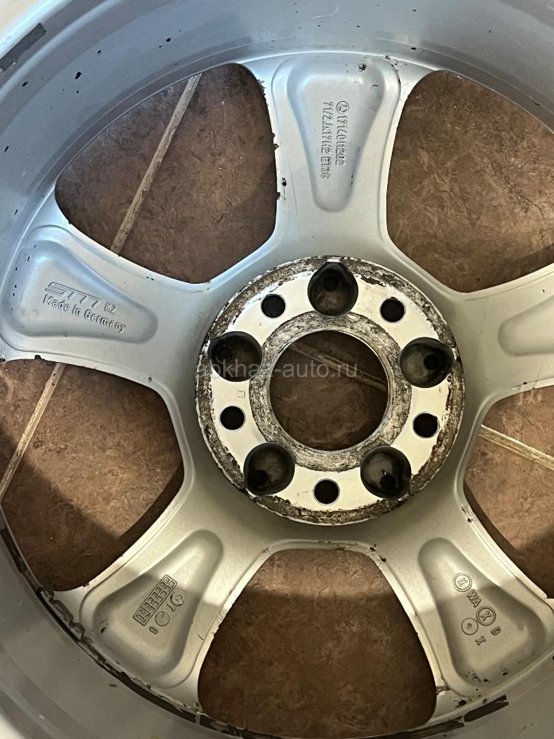 Дополнительная информация: Разноширокие оригинальные диски r17. Производства Adharaz / Gorgona (Германия). Есть бордюрка. Один диск вареный (на фото видно). Перед: 7,5Jx17 ET36 . Зад: 8,5Jx17 ET30. ЦО: 66.6, разболтовка 5х112, болты М12. Оригинальные артикулы: А1714011202 - передние, А1714011302 - задние. Диски подходят: w201, w202, w203, w208, w209, w210, r170, r171 и другие кузова.