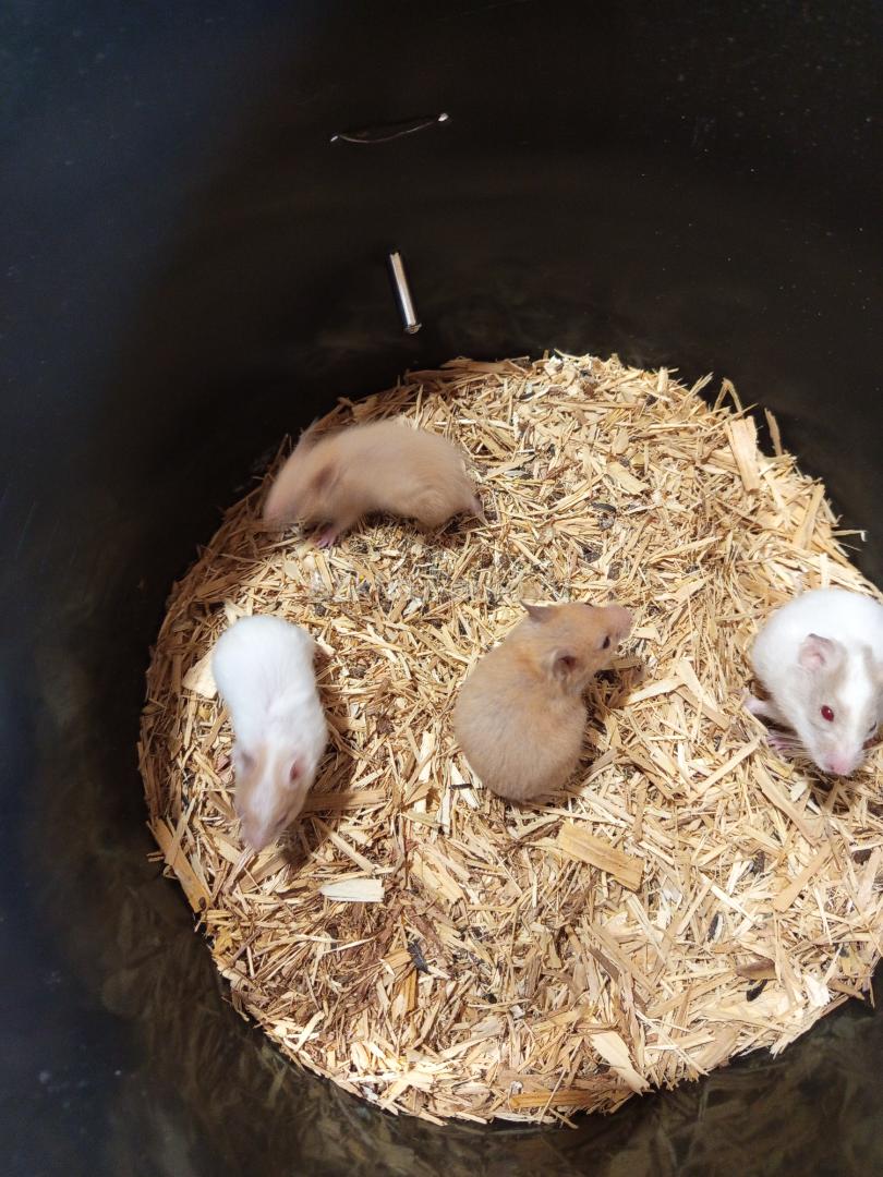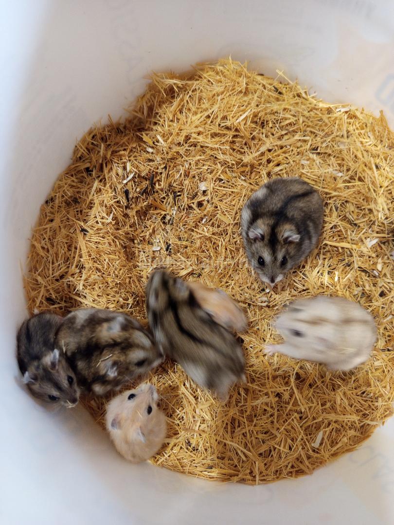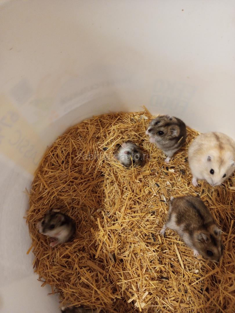 Хомяки, сирийские и джунгарские.