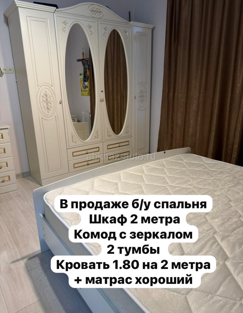 Дополнительная информация: Шкаф 2 метра Кровать 1.80 на 2 метра +матрас (почти новый брали за 13т.) Две тумбы Комод с зеркалом Все в хорошем состоянии как на фото Можем разобрать вам . По городу Сухум доставим только выгружать сами будите . Цена 45 тысяч Торг есть