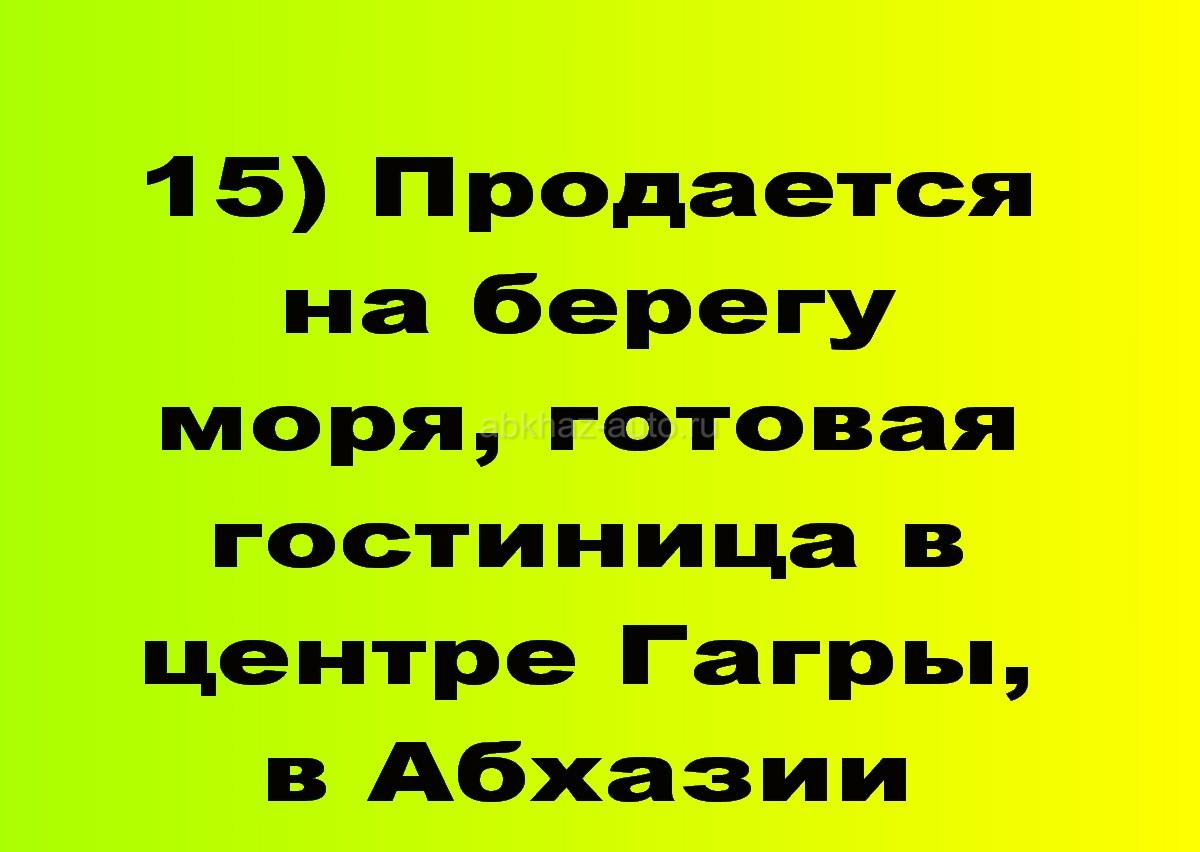 Дополнительная информация: 15) Продается со своим выходом на берег моря, на набережную города, готовая гостиница в центре Гагры, в Абхазии. Участок около 13 соток. В гостинице 24 номера с ремонтом. Красивый вид на море и горы. Цена 95 млн. руб. ТОРГ. тел., вотсап +79407703128, тел. +79409324389