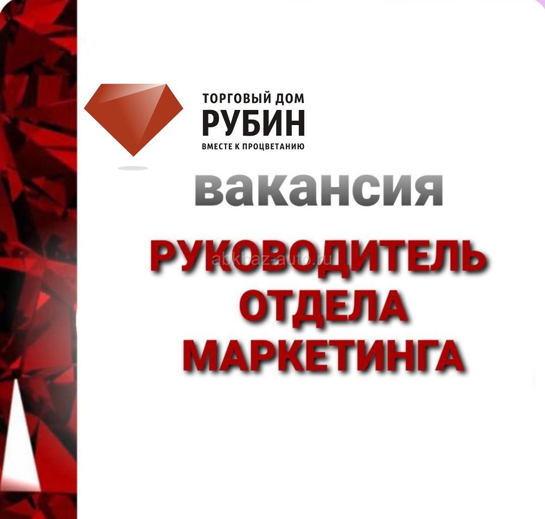 Дополнительная информация: В ТД Рубин требуется Руководитель отдела маркетинга. Обязанности: • Управление отделом маркетинга; • Развитие бренда; • Разработка и реализация маркетинговой стратегии компании; • Разработка маркетинговых мероприятий для реализации плана продаж; • Планирование и запуск рекламных кампаний; • Анализ эффективности маркетинговых мероприятий; • Ведение соцсетей. • Управление бюджетом: распределение, контроль, эффективность; • Работа в связке с командой отделов продаж, закупок, производства; • Работа с рекламно-производственными фирмами; Требования: • Опыт работы на аналогичной должности приветствуется; • Контент-портфолио приветствуется. • Инициативность, системное мышление. Условия: •Работа в современном офисе с комфортными условиями и дружелюбным коллективом; •Возможность влиять на продукт, команду и масштаб; ЖДЕМ ВАШЕ РЕЗЮМЕ на почту mm@tdrubin.com Телефон: 702-47-47 (звонить в будни с 8.00 до 17.00)