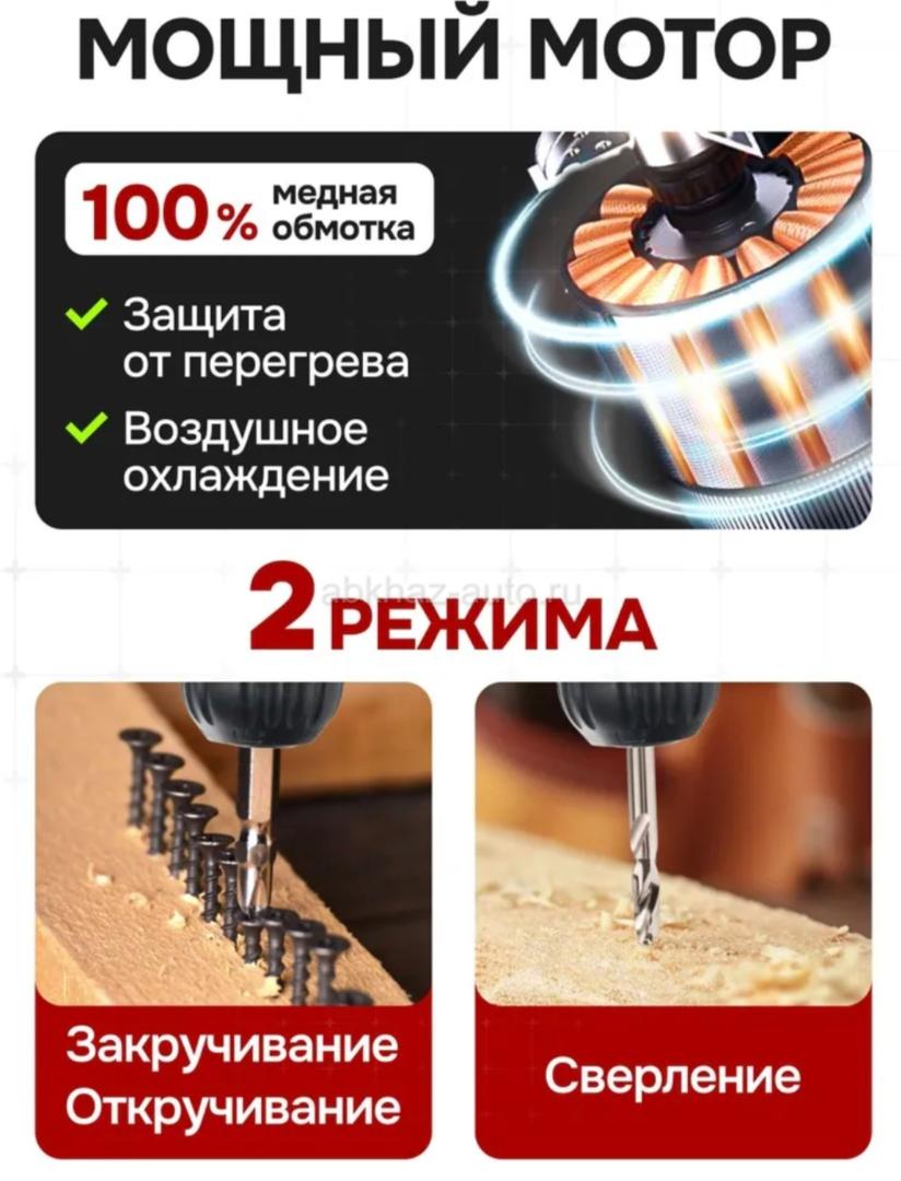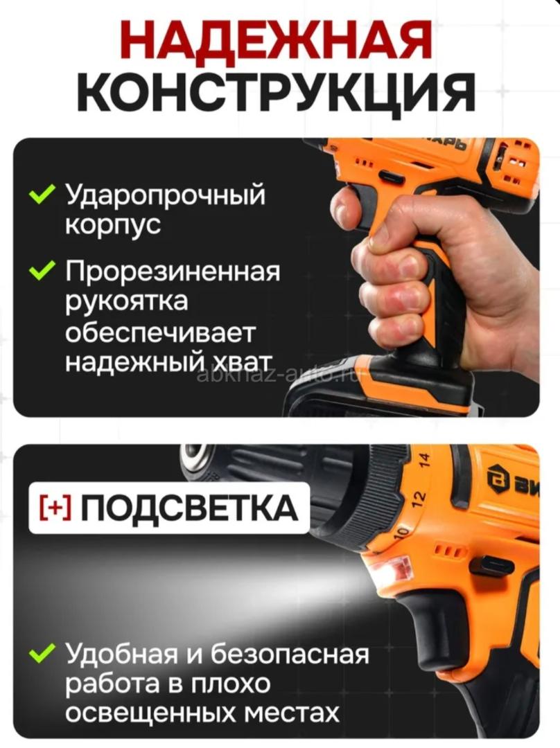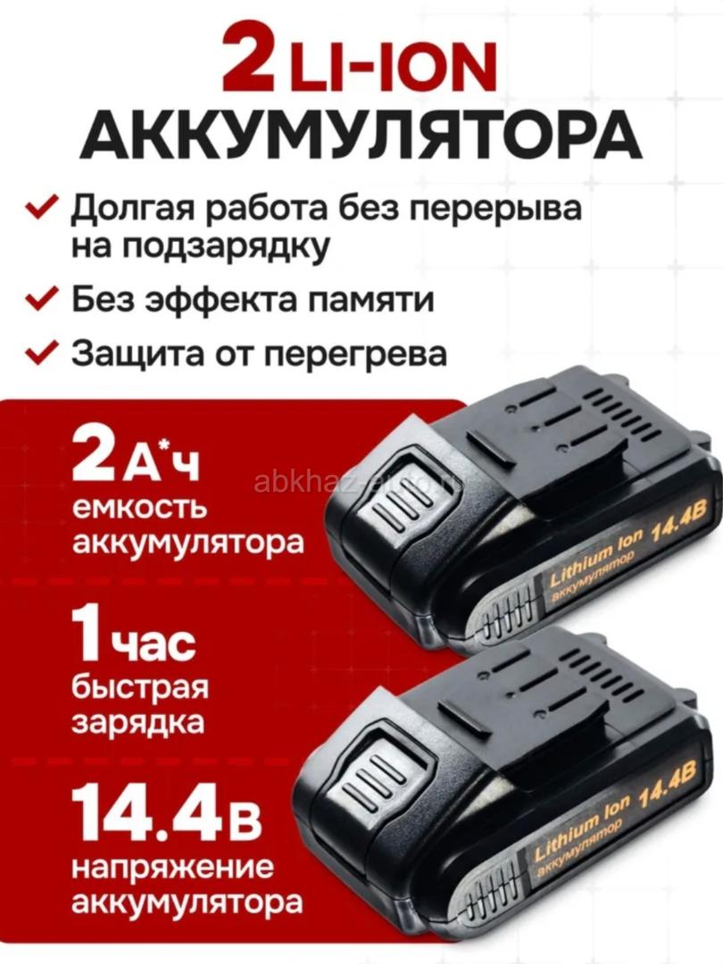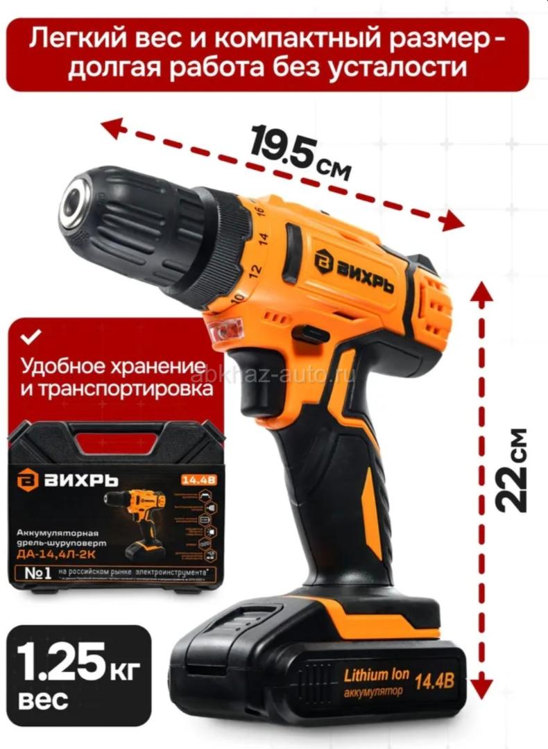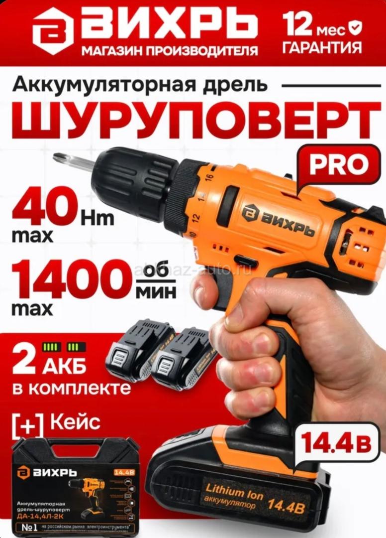 Дополнительная информация: Цена 5000 Писать в Директ +79409490275 Шуруповерт аккумуляторный, шуруповёрт с двумя аккумуляторами в кейсе (14.4 В, 40/20 Нм) Вихрь ДА-14,4Л-2К незаменимый помощник мастера в ремонте или строительстве. Прибор аккуратно сверлит отверстия на поверхностях из дерева и металла, также накрепко закручивает шурупы. Модель работает от надёжного литий-ионного аккумулятора (Li-Ion). Тип двигателя Электрический, щеточный Питание От аккумулятора 14,4 В Максимальный крутящий момент, Н*м 30 Тип аккумулятора Li-lon Емкость аккумулятора, А*ч 2 Количество аккумуляторов в комплекте 2 шт. Тип патрона Быстрозажимной - Диаметр патрона, мм 0.8 – 10 Время зарядки аккумулятора, час 1 Количество скоростей 2 Частота вращения, об/мин 0-350/0-1350 Вес 1,3 кг меньше