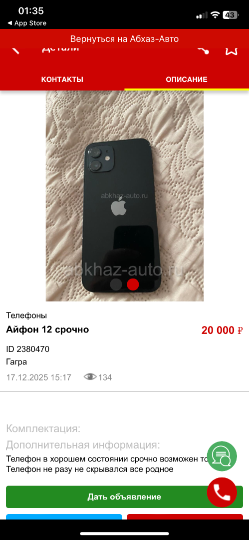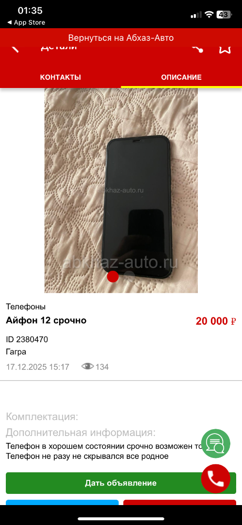 Дата подачи объявления: 19.12.2025 01.37
