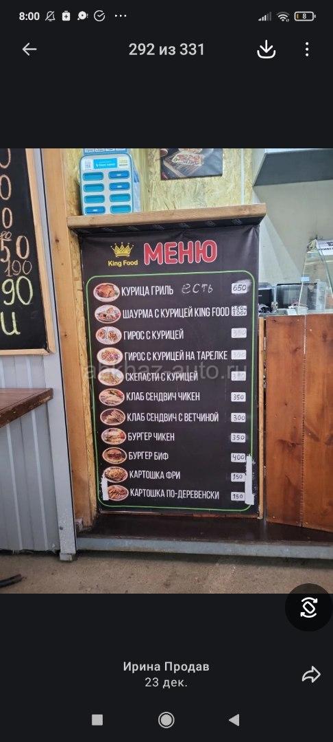 Дополнительная информация: Срочно продаю точку заточена на шаурму, фаст-фуд, комплексные обеды , посадочная зона есть, оборудование всё есть. Сотрудники есть. Аренда за 2 ларька 30т в месяц. Руководство лояльное, трафик средний, летом хороший. Писать макс, вацап, телеграмм. 89184171989.предложение срочное.