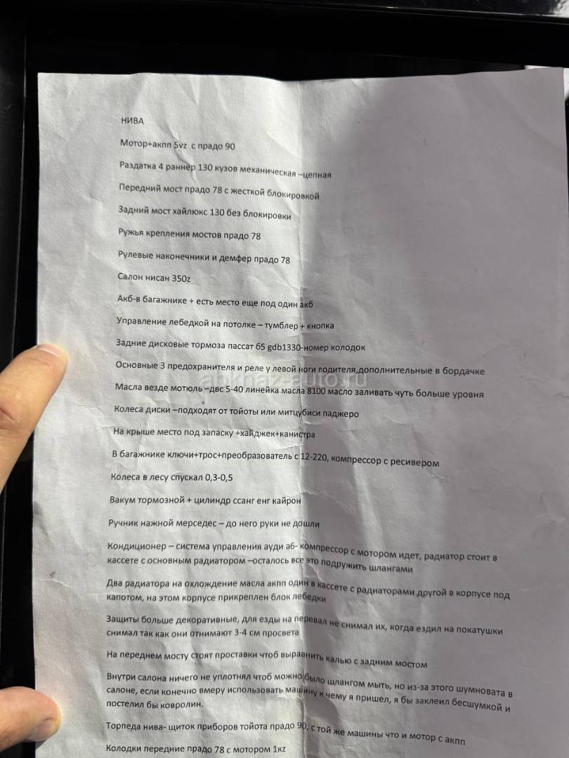 Двигатель: бензиновый, 3.4 л Трансмиссия: ручная Кузов: внедорожник Цвет: другой Пробег: 180000 км Год выпуска: 2000 Регион: Сухум Дополнительная информация: Нива Г 2000 180т 3,4 550 +79409622055