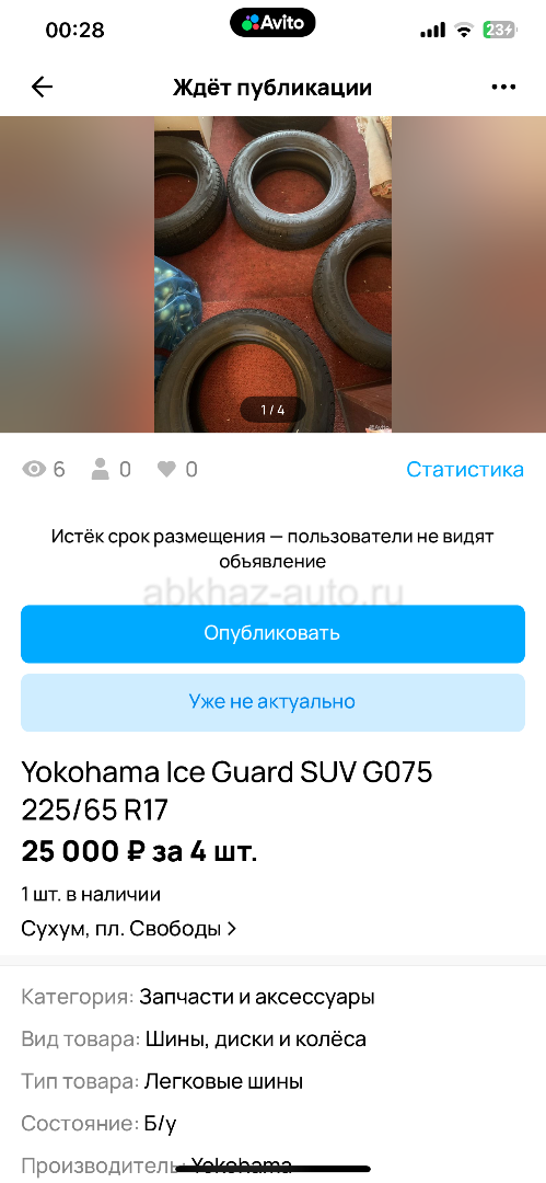 Дополнительная информация: Продам поддержаны зимние шины Yokohama (оригинал)R 17 в хорошем состоянии, шины эксплуатировались только зимой…
