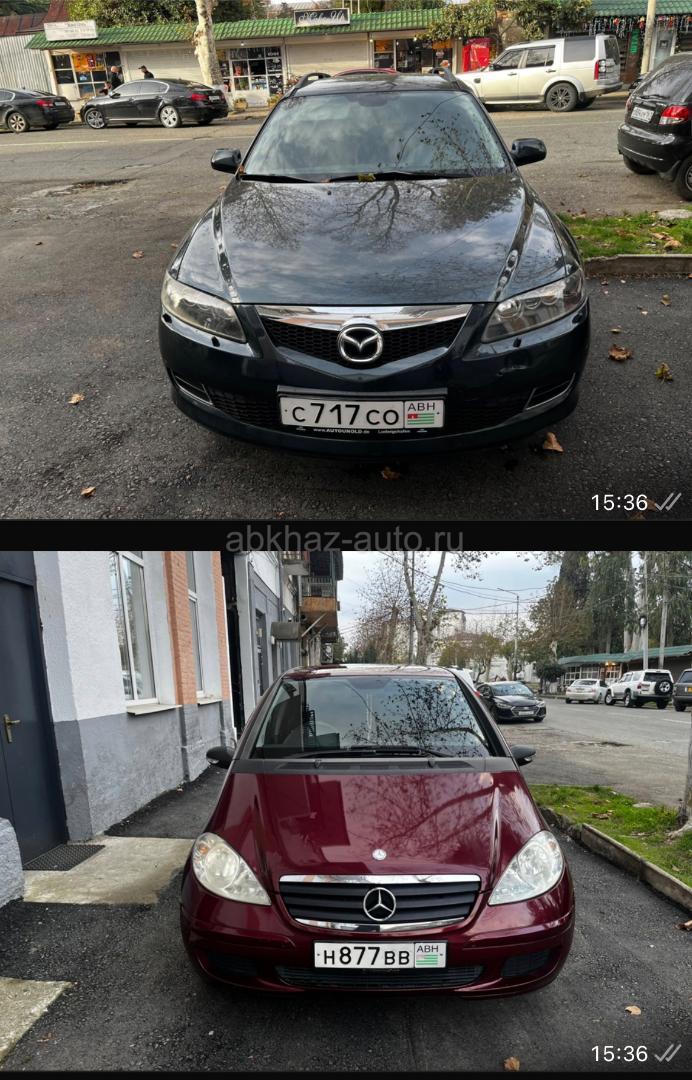 Дополнительная информация: Мазда 6 универсал , механика, левый руль, в хорошем состоянии. По внешке на фото видно, по ходуле небольшие вложения Мерседес в хорошем состоянии, правый руль, автомат 1.7, год 2007, пробег 190000 есть мелкие недочеты по кузову , стоит газовое оборудование Обе машины в хорошем состоянии Рассмотрю обмен на одну, возможно и с моей небольшой доплатой, желательно кроссовер или джип (можно по Абхазии) Оцениваю обе в 600 тыс Все вопросы и варианты на вотс апп +79407244646