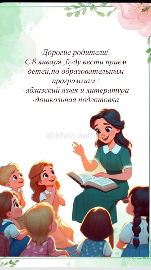 Дополнительная информация: Дорогие родители ! С 12 января , буду вести прием детей, по образовательным программам: абхазский язык и литература -дошкольная подготовка