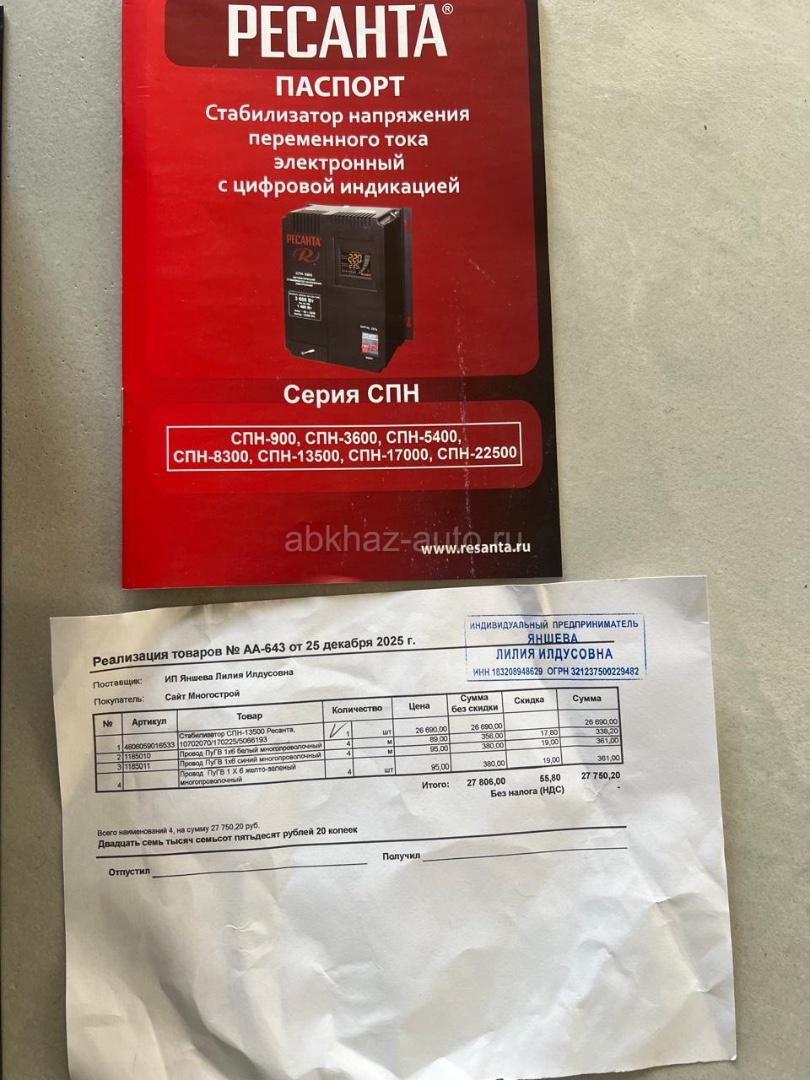 Дополнительная информация: Ресанта 13500в 220вт на гарантии есть чек. Куплена в Адлере 25.12.25г в магазине многострой. Не подошла по мощности, пользовался два дня. Покупал за 26т. Все видно на фото.
