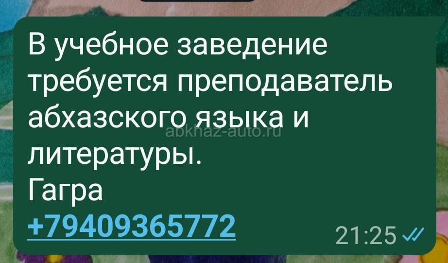 Дополнительная информация: В учебное заведение требуется преподаватель абхазского языка и литературы Гагра +79409365772