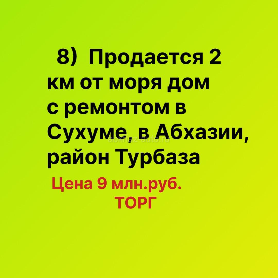 Дополнительная информация: 8) Продается 2 км от моря жилой 2-х этажный дом с ремонтом в Сухуме, в Абхазии, район Турбаза. Дом с земельным участком 5 соток. Цена 9 млн. руб. ТОРГ. Тел., вотсап +79407703128