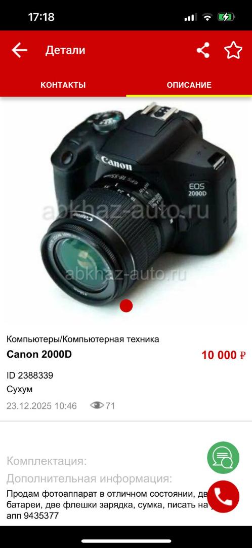 Дополнительная информация: Фотик рабочий в хорошем состоянии, две флешки, две батареи, зарядка. Не звонить, писать на уотсс апп 9435377