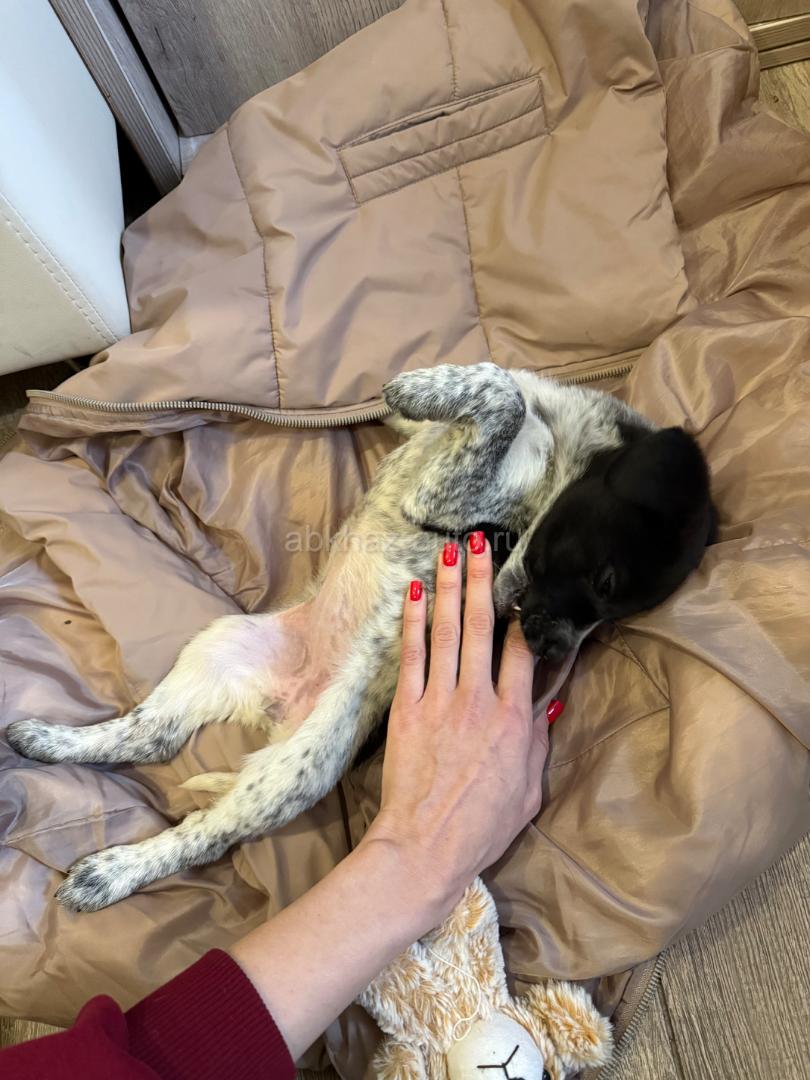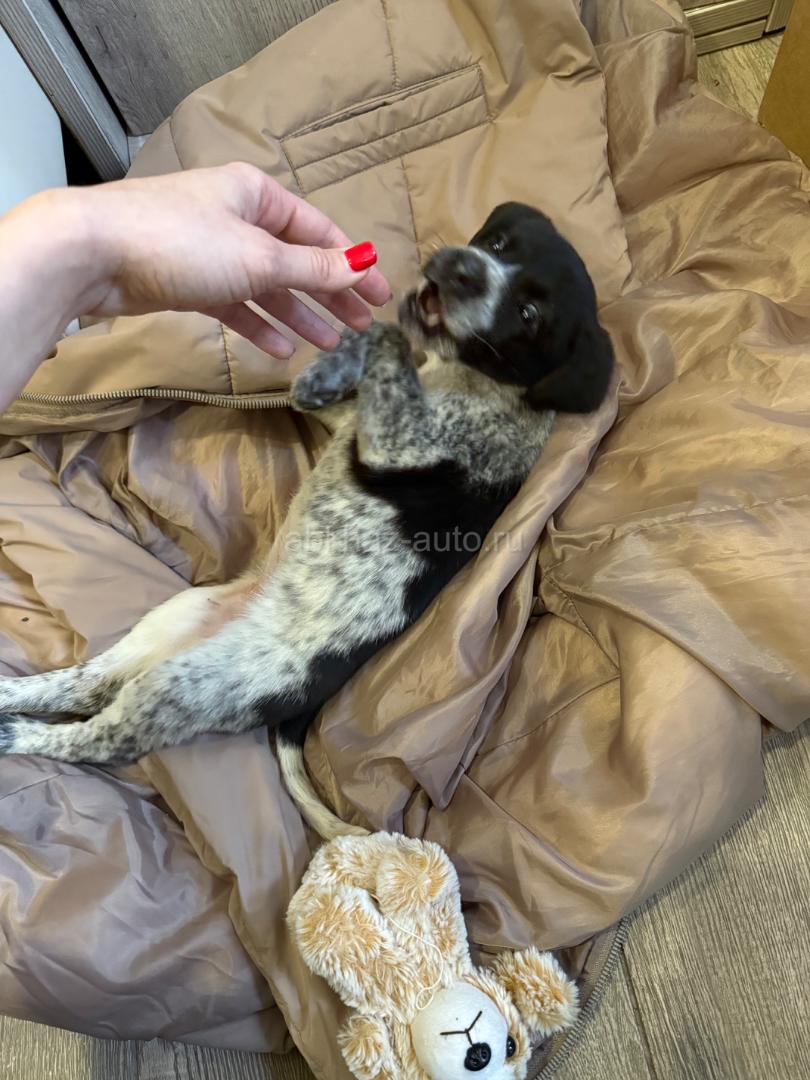 Дополнительная информация: Девочка. Подобрали на улице. 1,5-2 месяца. Охотничья (наполовину или полностью). Очень игривая, здоровая