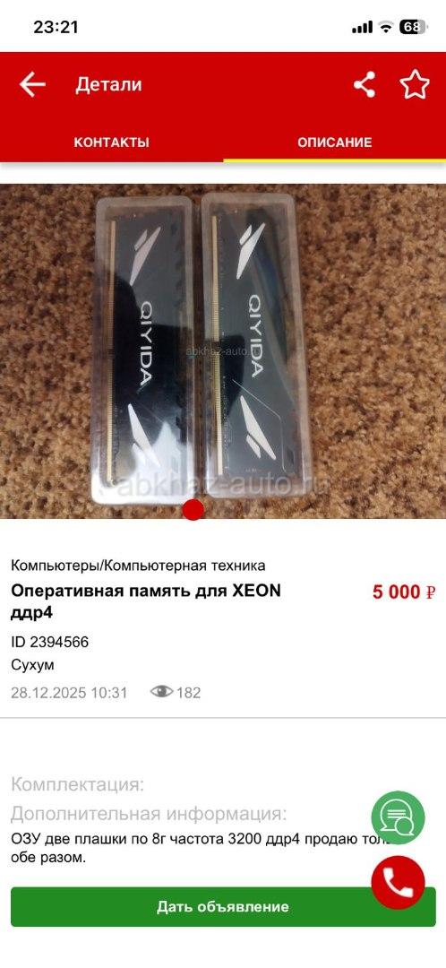 Дополнительная информация: ОЗУ ддр4 две плашки по 8г 3200Мг Продаю обе разом до процесса XEON Серверная.