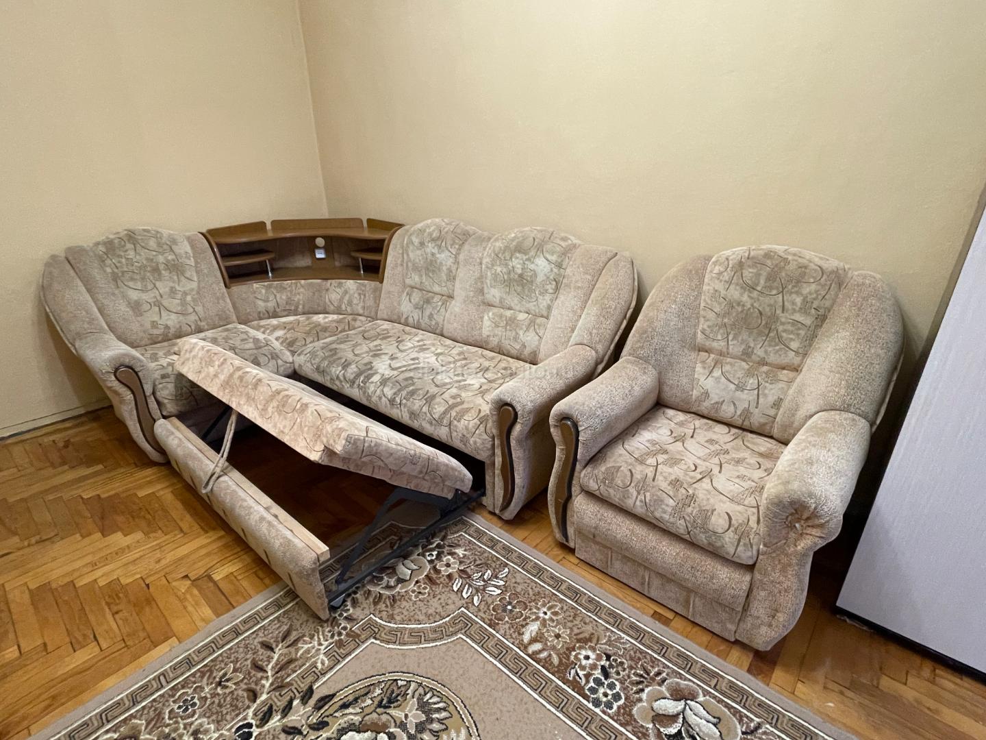 Дополнительная информация: Угловой диван с креслом, раскладной, двухспальный. Не новый, б/у, дополнительно скину видео обзор. На фото все видно! Звоните, пишите на WhatsApp (диван находится в Агудзере)