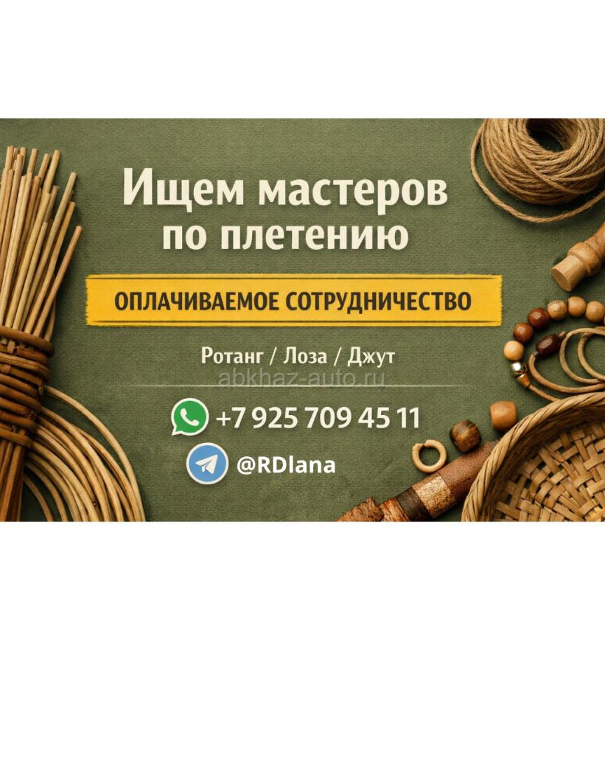 Дополнительная информация: Нужны мастера по плетению из лозы под заказ. Сдельная оплата, объём обсуждается. Ротанг / лоза / джут. Детали в переписке. Ждем вас! WhatsApp/Telegram: +7 925 709-45-11