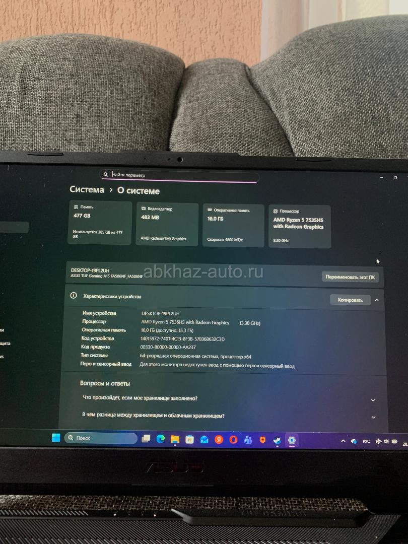 Дополнительная информация: продается игровой ноутбук Asus tuf gaming.512 гб основной памяти и 16 гб оперативной,модель процессора AMD Ryzen 5 7535HS,базовая частота производительных ядер 3.3 ГГц максимальная 4.55ГГц,поколение процессоров AMD Ryzen 7000 с видеокартой GeForce RTX 2050.общее количество ядер 6,цена 50 торг,также рассматриваю обмен на айфон от 14 про с доплатой в обе стороны.
