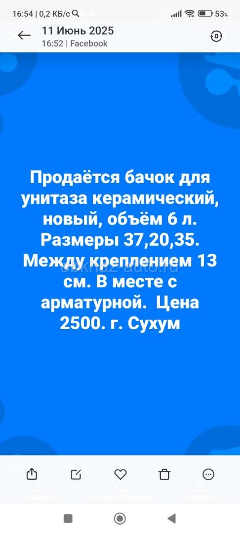 Дополнительная информация: Продается новый бачок для унитаза, керамический вместе с арматурой. Обьем 6 литров. Размеры 37,20, 35. Между креплением 20 см.