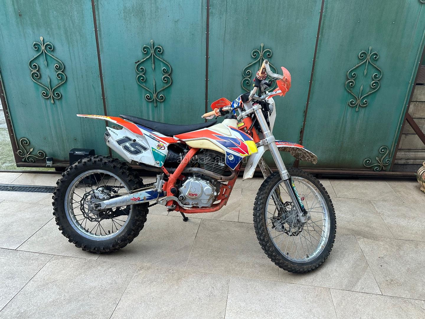 Двигатель: бензиновый Трансмиссия: ручная Кузов: внедорожник Цвет: желтый Пробег: 1 км Год выпуска: 2023 Регион: Гагра Дополнительная информация: Мотоцикл Кайо 250 кубок. 172мотор. Брал летом по этой же цене. Выезжал несколько раз. Реальному покупателю отдам весь комплект снаряжения, кроме мотоботов. Также запасную камеру, набор для замены камеры, тросик газа. Руслан +79407362323