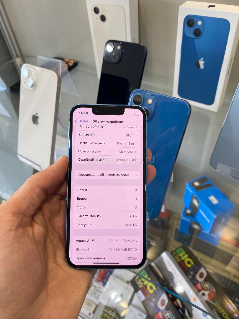 Дополнительная информация: Звонить писать сюда:❗️999-30-10❗️ Продаю айфон 13 mini Память:128 Акум:78% Телефон весь в оригинале ! Без ремонтов и вскрытий ! Комплект:телефон провод ! В наличии большое количество телефонов! Наш адрес г.Гагра ул.Сосналиева 1, чуть ниже светофора в городе ! Рядом с медовым отелем ! Так же занимаемся услугой Трейд-Ин (обмен старого на новый)! Клеем защитное стекло , аксессуары и многое другое ! Так же доставляем новый телефоны в течении дня! Есть доставка по Абх !