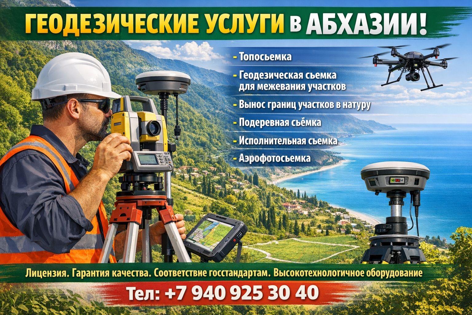 Оказываем все виды геодезических услуг в Абхазии: