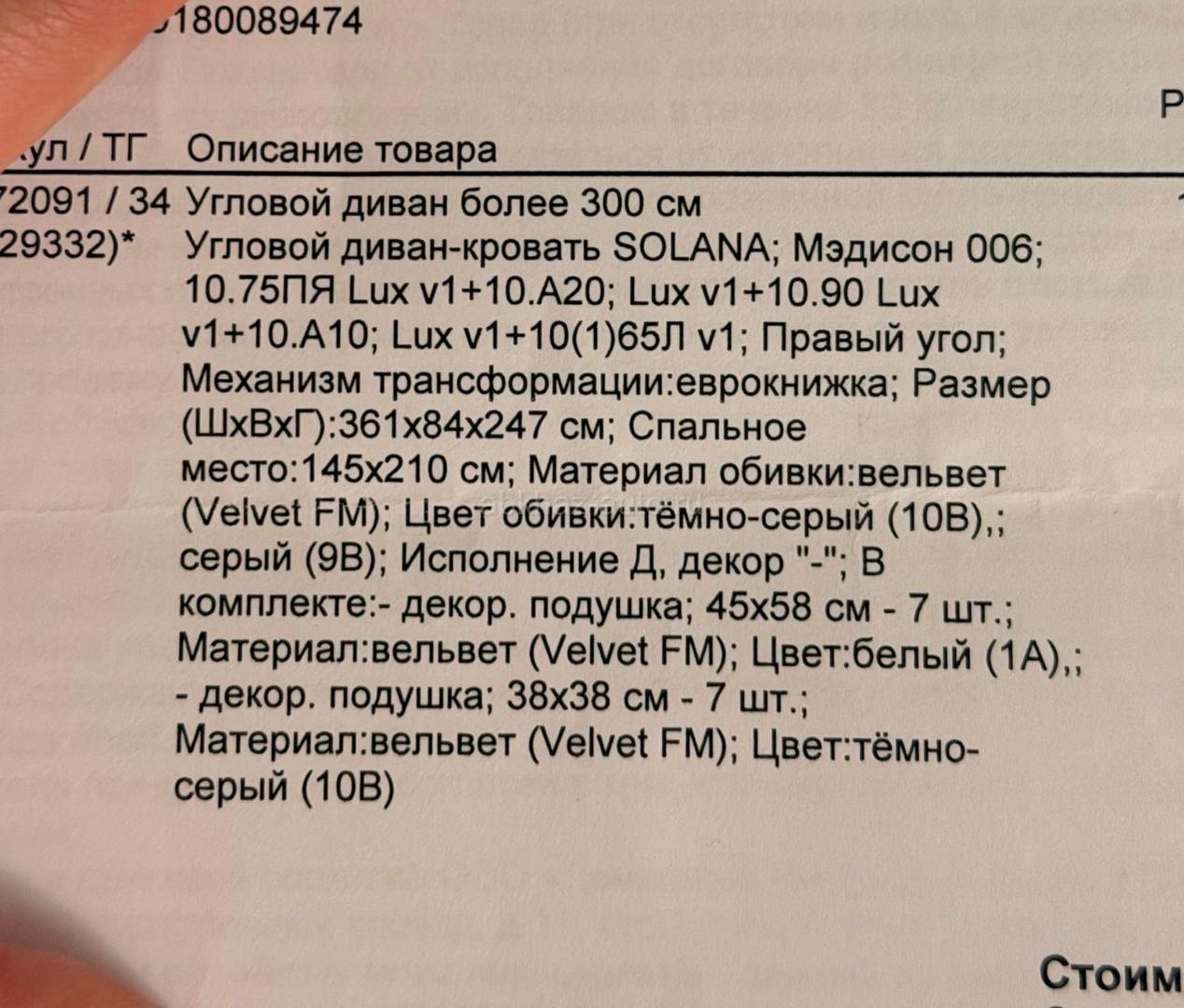 Дополнительная информация: Продается диван ,совершенно новый,вчера привезли,причина продажи не подошел угол