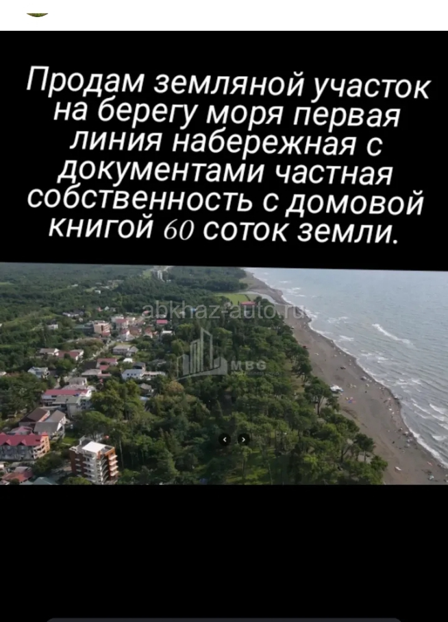 Продается участок на берегу 18 соток . Алахадзы