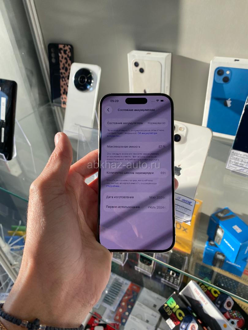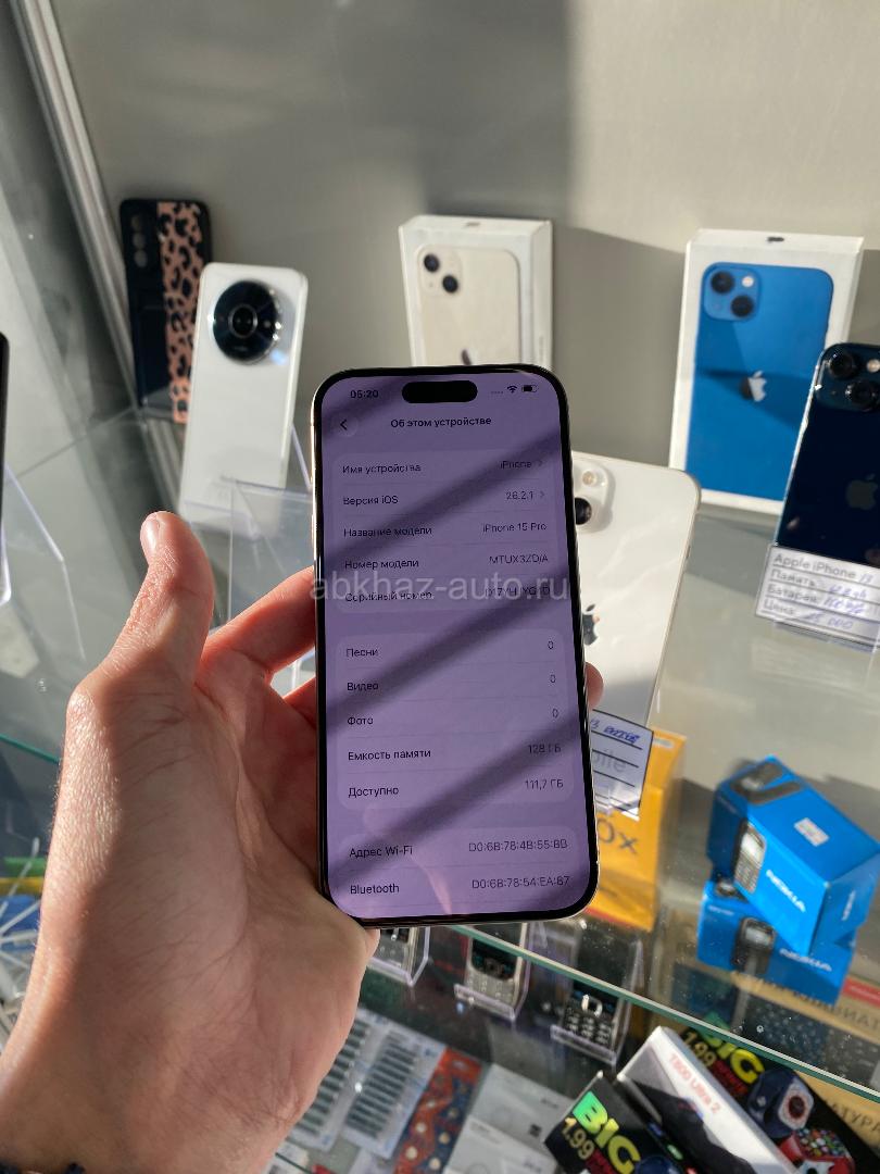 Дополнительная информация: Звонить писать сюда:❗️999-30-10❗️ Продаю айфон 15 Pro Память:128gb Акум:88% Телефон весь в оригинале ! Без ремонтов и вскрытий ! В наличии большое количество телефонов! Наш адрес г.Гагра ул.Сосналиева 1, чуть ниже светофора в городе ! Рядом с медовым отелем ! Так же занимаемся услугой Трейд-Ин (обмен старого на новый)! Клеем защитное стекло , аксессуары и многое другое ! Так же доставляем новый телефоны в течении дня! Есть доставка по Абх !