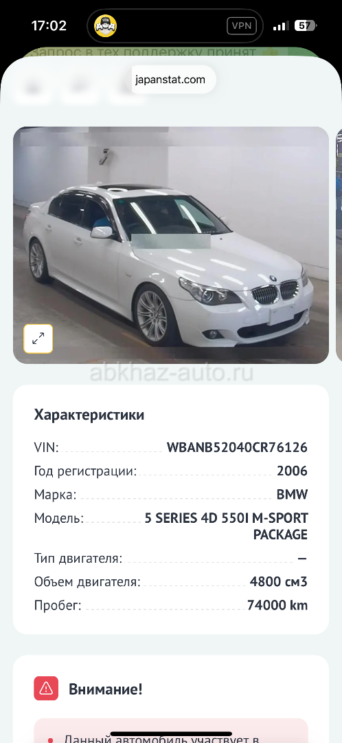 Двигатель: бензиновый, 4.8 л Трансмиссия: автоматическая Кузов: седан Цвет: белый Пробег: 74000 км Год выпуска: 2006 Регион: Вся Абхазия Дополнительная информация: С учетом доставки до АБХАЗИИ