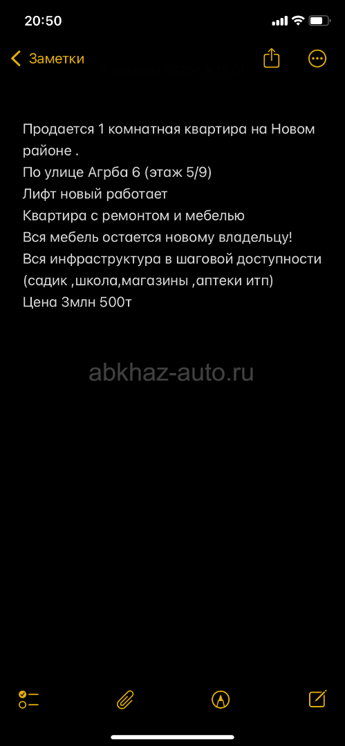 Продаётся уютная 1,5-комнатная квартира в центре Сухума