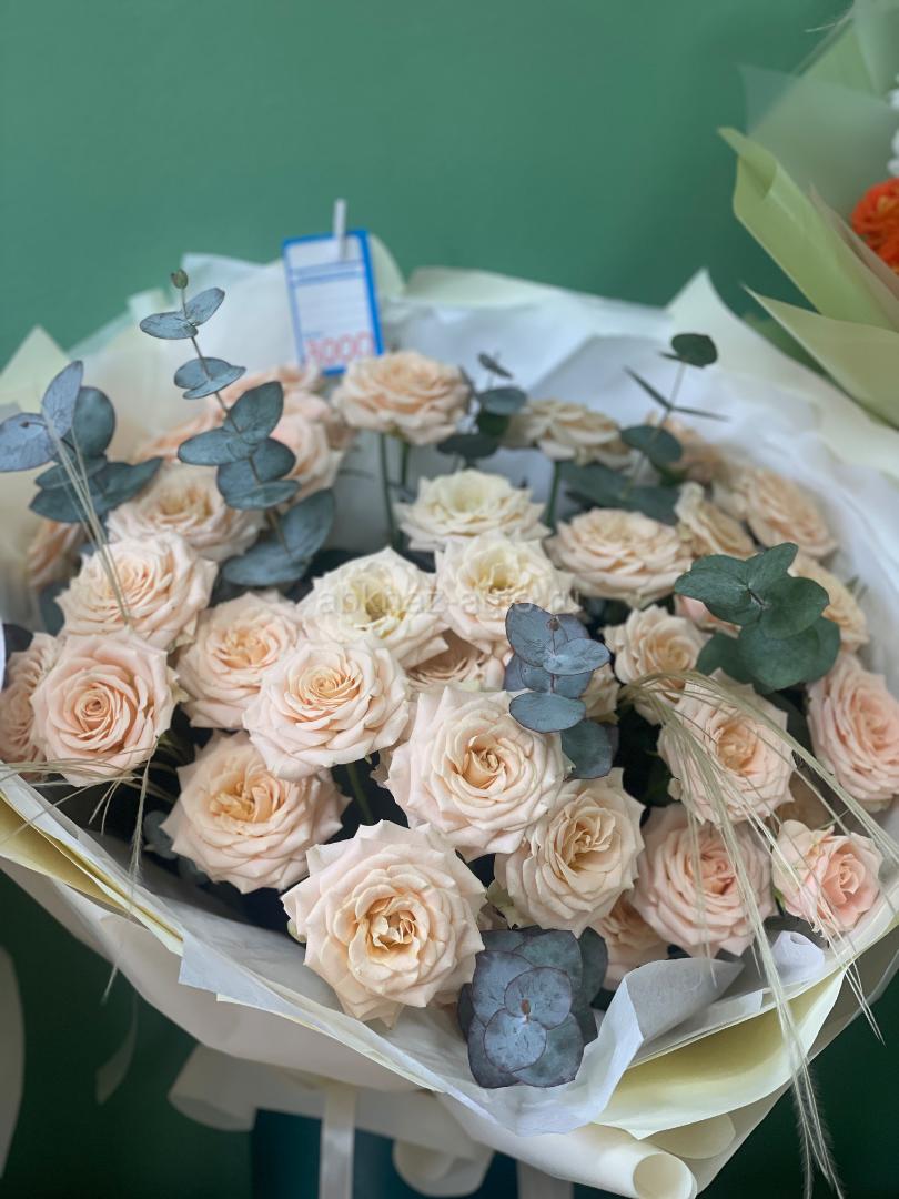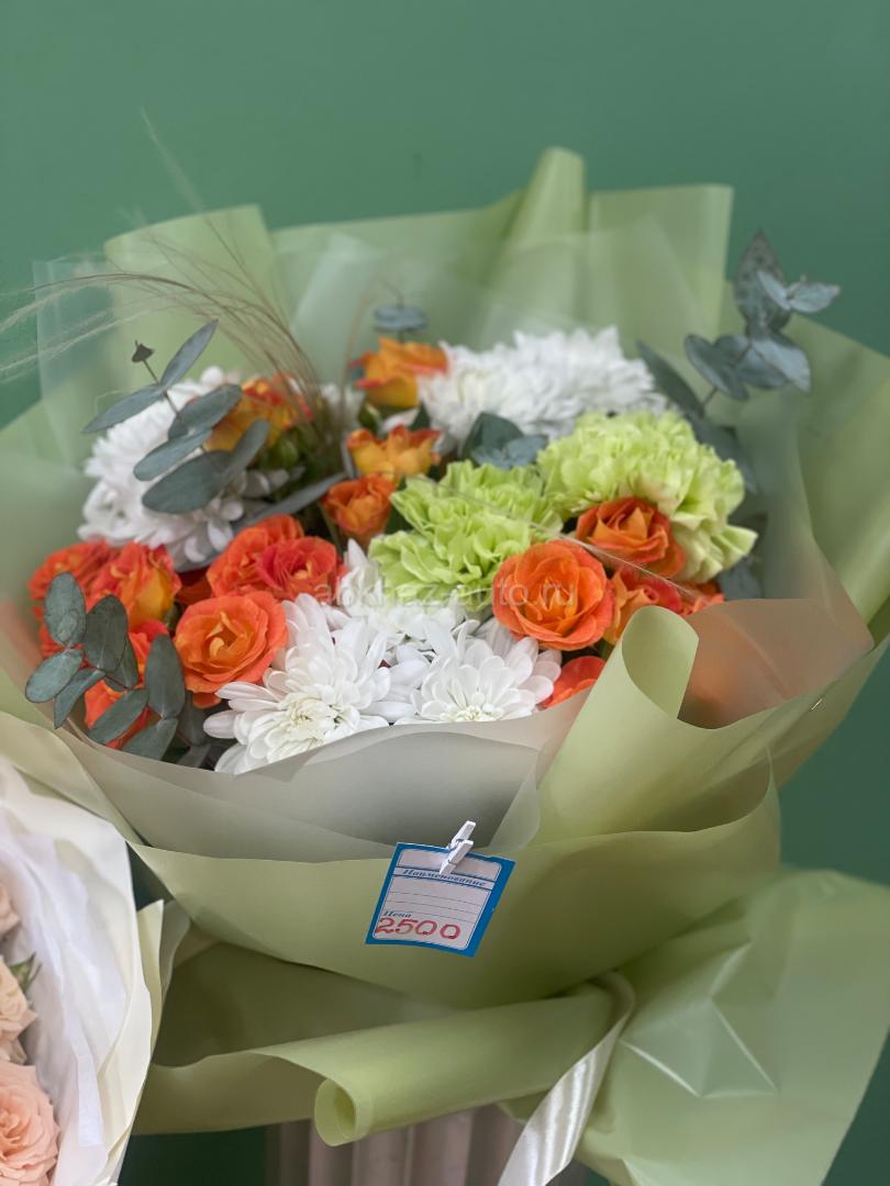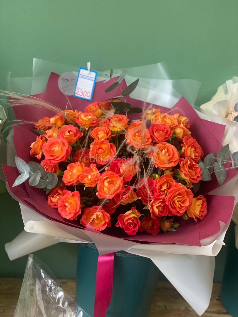 Дополнительная информация: Букеты разных композиций . Розы, орхидеи, тюльпаны, гвоздики и многое другое. Ждем вас по адресу Аидгылара 19.Ориентир аптека кислород . Работает доставка